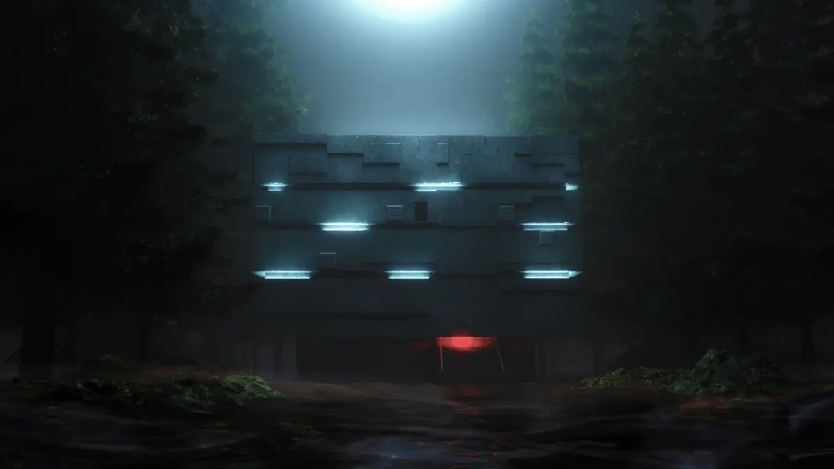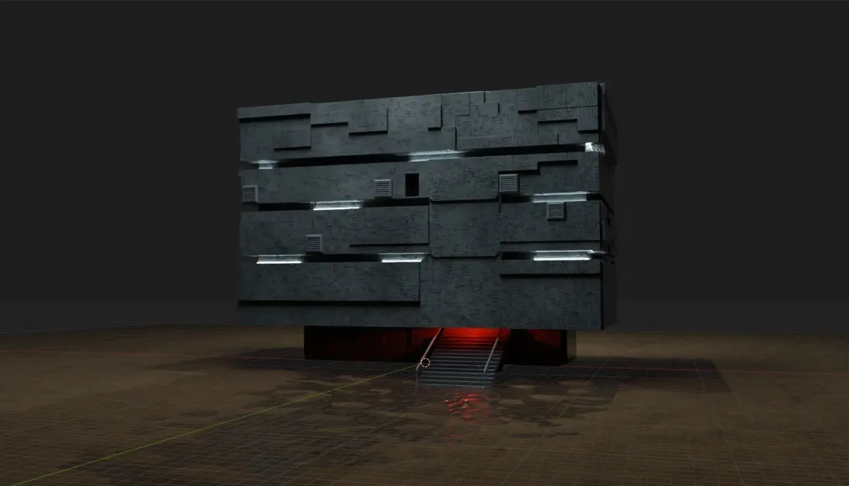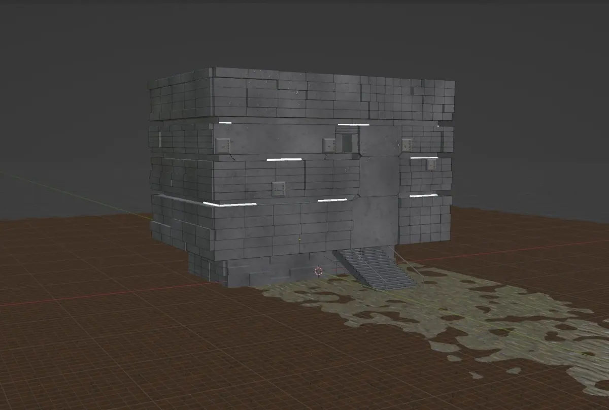 A simple squarish concrete command center consisting of air vents and an entrance stair case, dark ambience, perfect for a Forest Base scene.works well with trees and a dark ambience good for cinematics and landscapes.