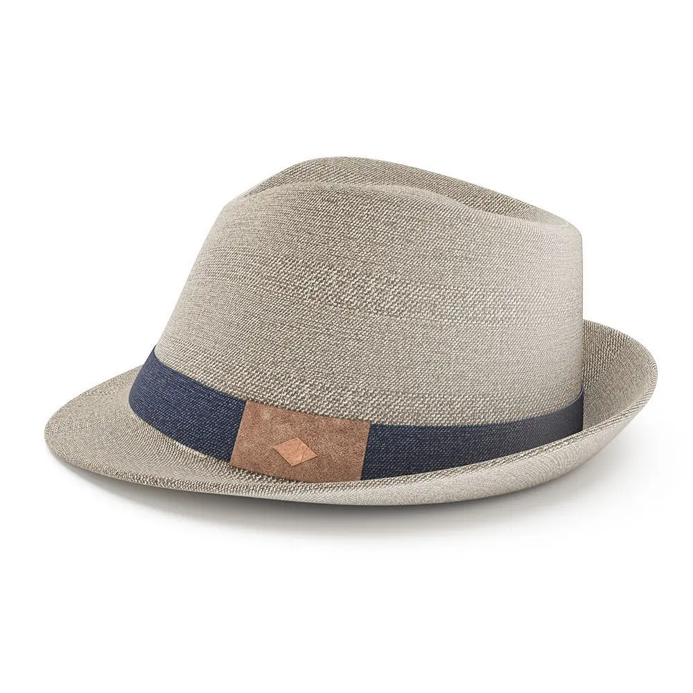 The Bastion Goorin Brothers Fedora Hat in light brown polyester with diamond shaped logo pin.
