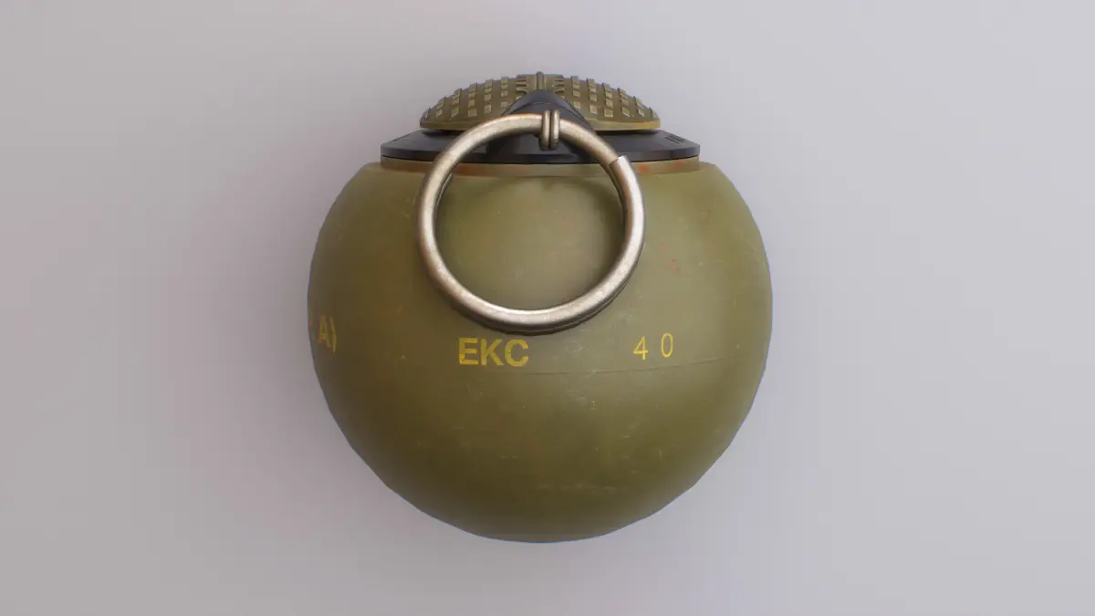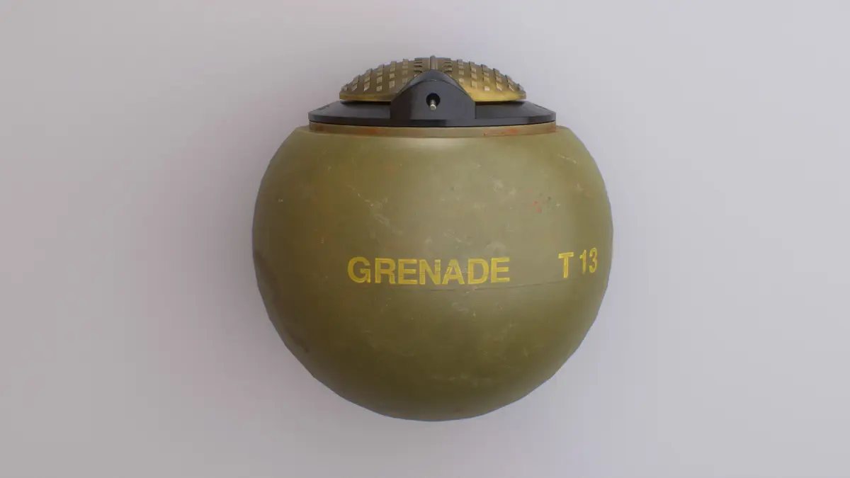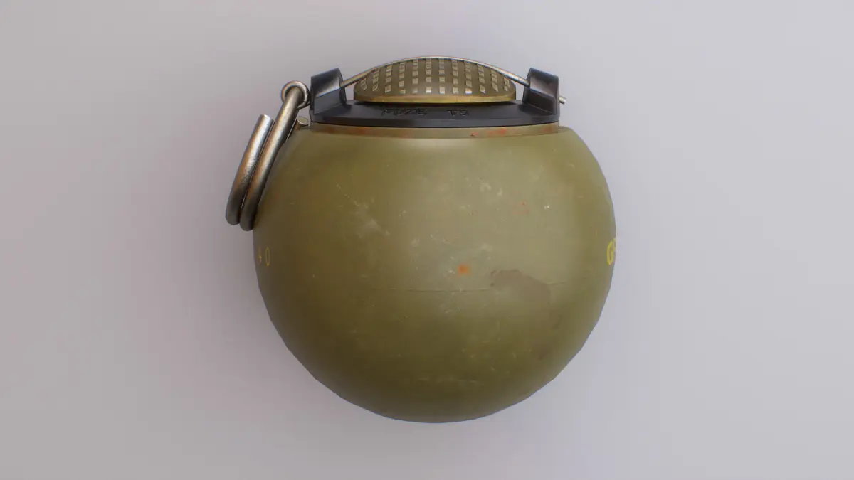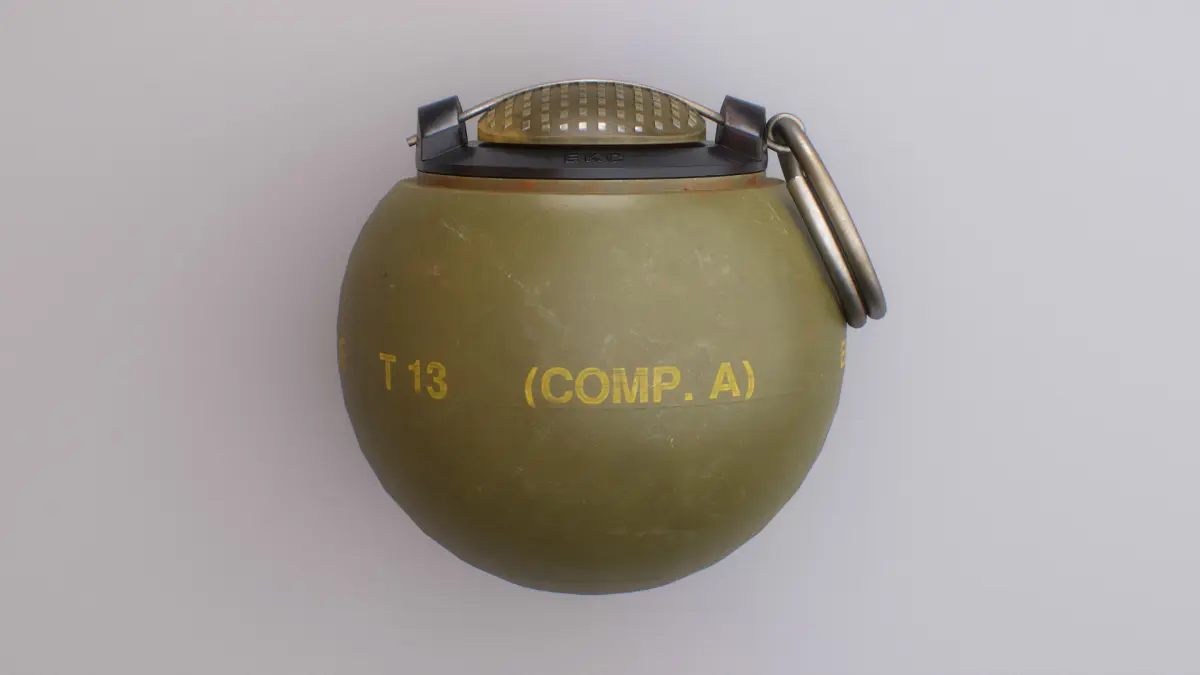 This model is a The BEANO T-13 hand grenade that is close to real size. It modeled and UV mapping in blender texturing in substance painterand bake and rendered image in marmoset toolbag