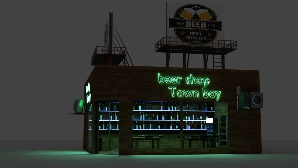 (If you download fbx file where are mistakes in materials not in texture)This project (the beer shop) is rendered in blender 3 cycleswe have given good texture for the model and is has good interor...like our model...