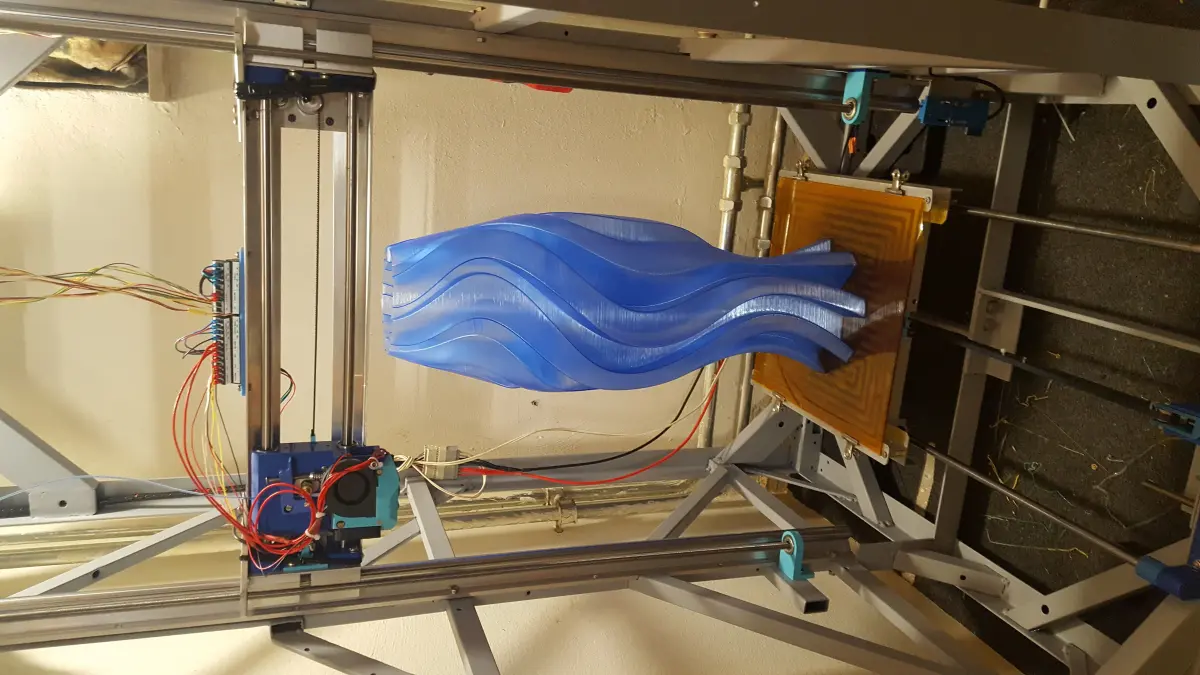 The Aluminum tube I used is 490mm high and has an outer diameter of 34mm.The Lamp Shade (or Vase) is 558.7mm high. Yes I had to scale it down because there was not enough Filament on any Roll at the time :-) At 100% scale it is 705.871mm high.Note that the Lamp Shade (or Vase) is printed using the “Spiral Outer Contour” mode in Cura.The Nozzle I used is 0.8mm. With smaller Nozzle sizes the print will warp at this size.