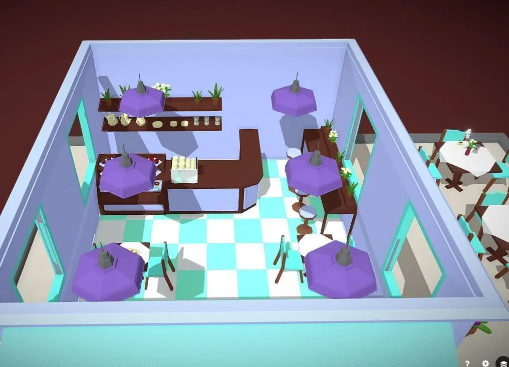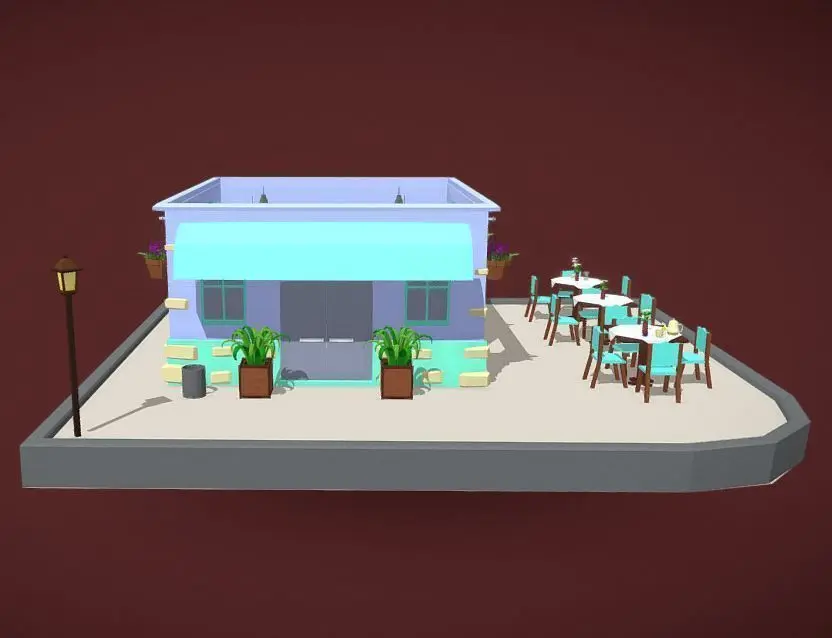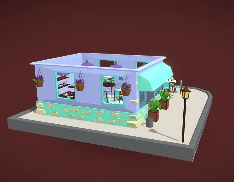 This is the final version of my 3D low poly cafe, made in Blender. This model can be used in low poly games, scenes or renders.