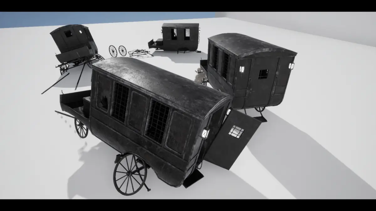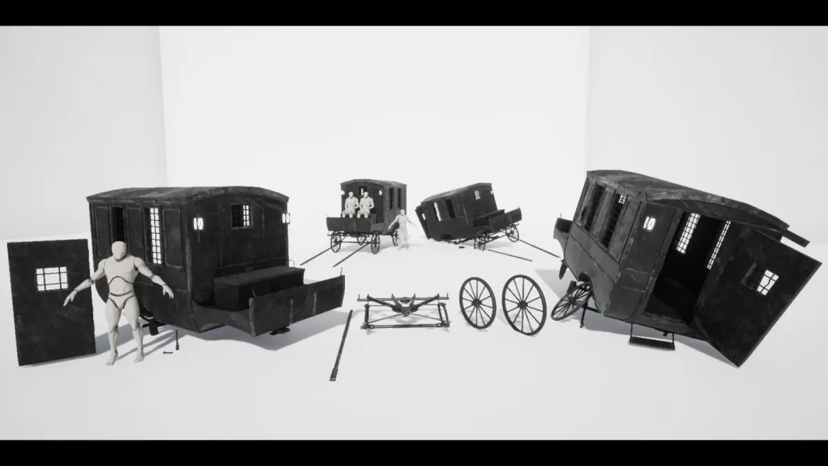 The Carriage 03. Fully rigged. The product includes mask textures for creating costomizable materials, namely the tint control. The Images rendered in the Unreal Engine 4. The Project Includes 512-4K Metallic, Roughness, Base Color, Normal and maps to setup your own PBR renders as required. There is also PBR Workflow Texure: AO, Roughness, Metallic. (AO_R_M Texture).
