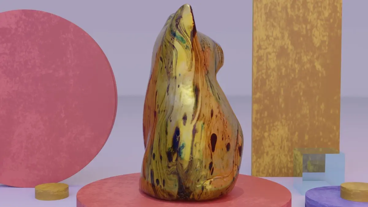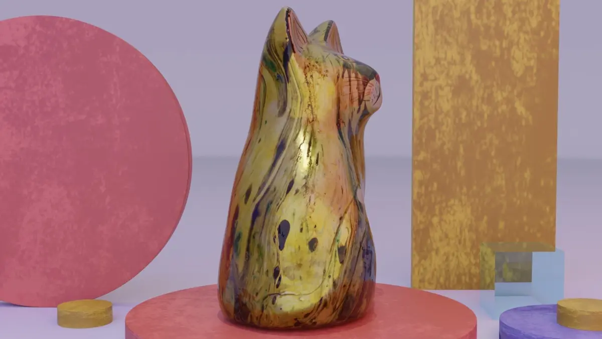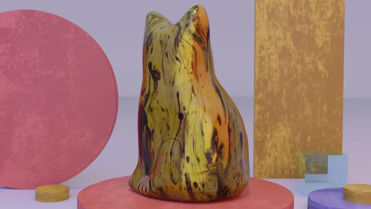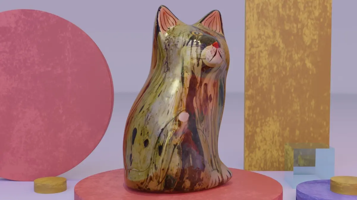 This is a photorealistic high-poly 3D model of the cat ceramic statuette.