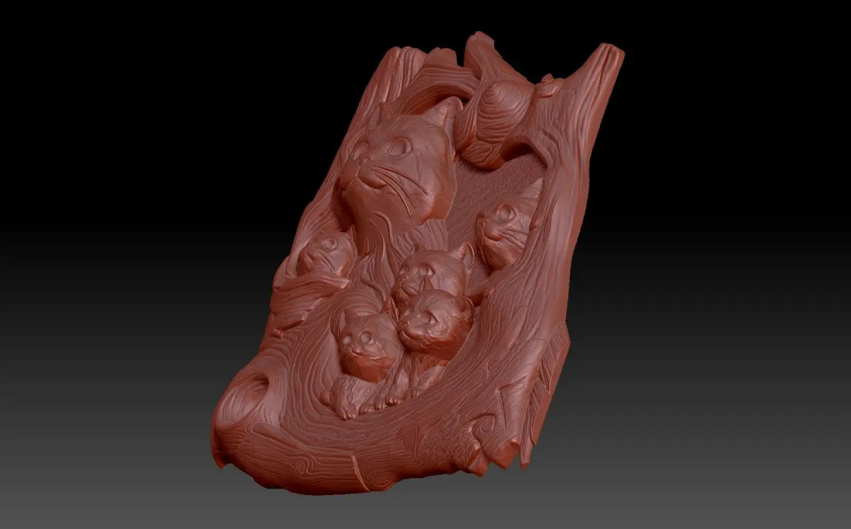 A sweet and kind composition made in bas-relief for 3D printing. A family of six cats, five kittens and a mother sitting in a hollow tree. Funny and playful kittens, who are looked after by their mother.Suitable for CNC and 3D printing.