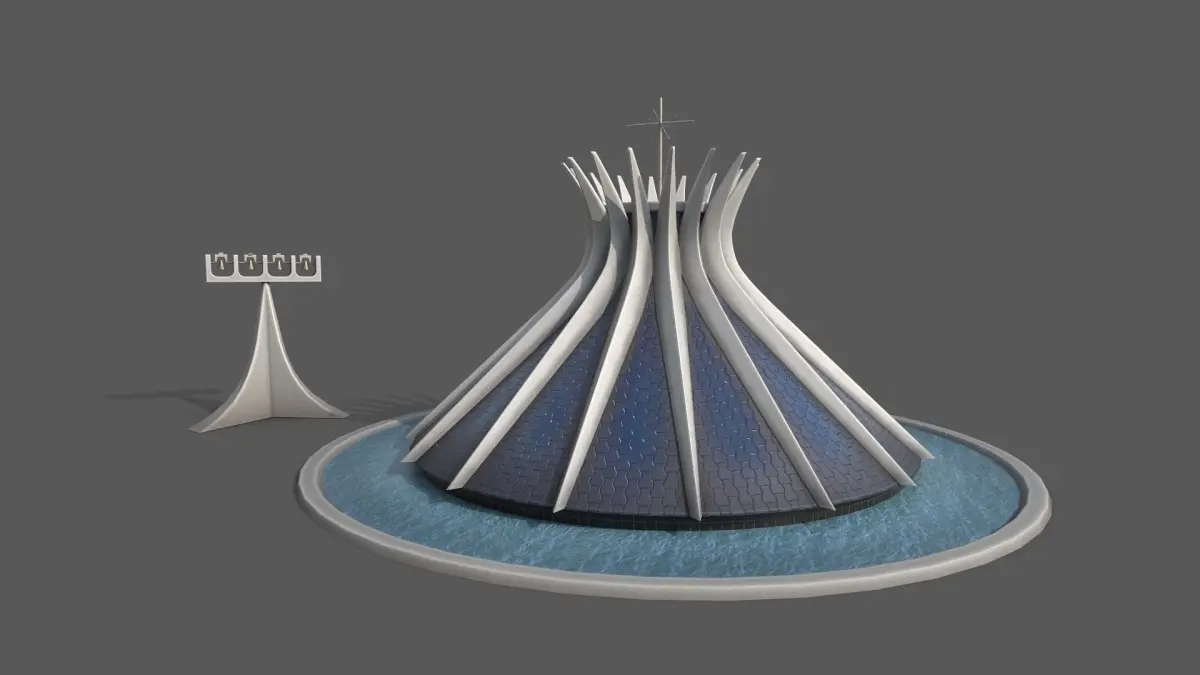 The Cathedral of Brasília (Portuguese: Catedral Metropolitana de Brasília, Metropolitan Cathedral of Brasília) is the Roman Catholic cathedral serving Brasília, Brazil, and serves as the seat of the Archdiocese of Brasília. It was designed by Brazilian architect Oscar Niemeyer and engineered by Brazilian structural engineer Joaquim Cardozo and was completed and dedicated on May 31, 1970. The cathedral is a hyperboloid structure constructed from 16 concrete columns weighing 90 tons each.