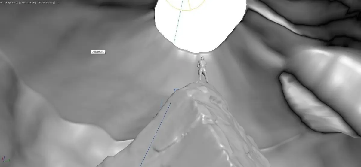 3ds max vrayman standing a rock in the caverenderlowpoly