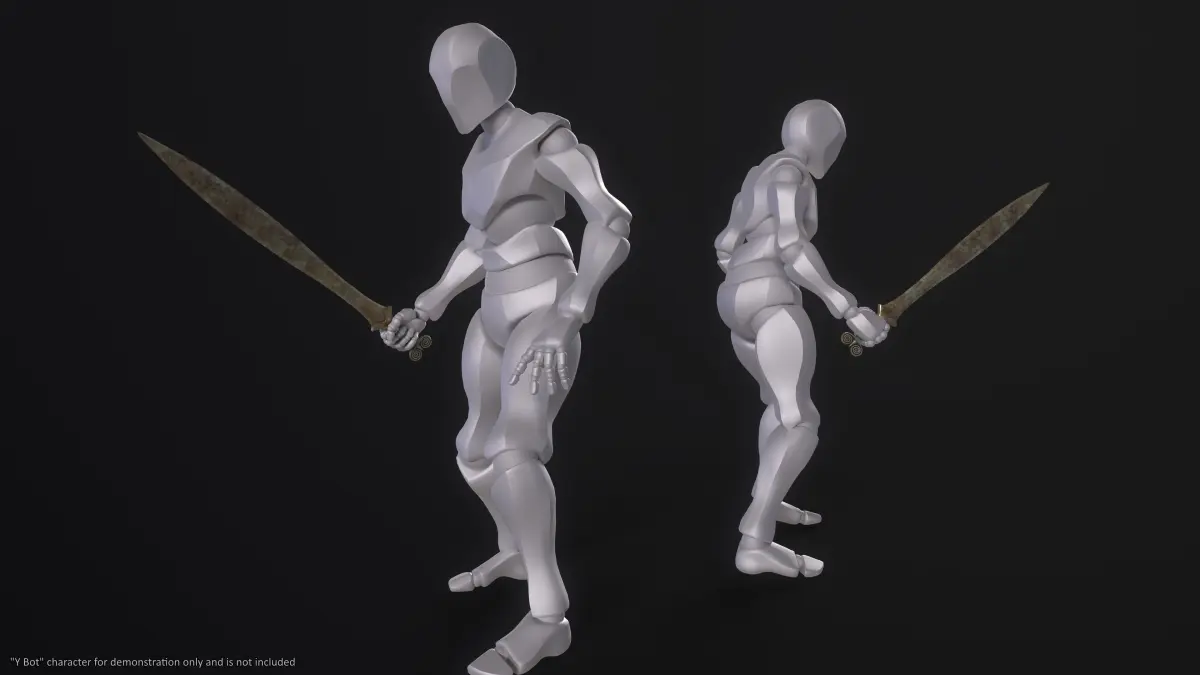 Three texture sets are included: A clean all-bronze version, a slightly worn version of the previous, and a corroded version.
