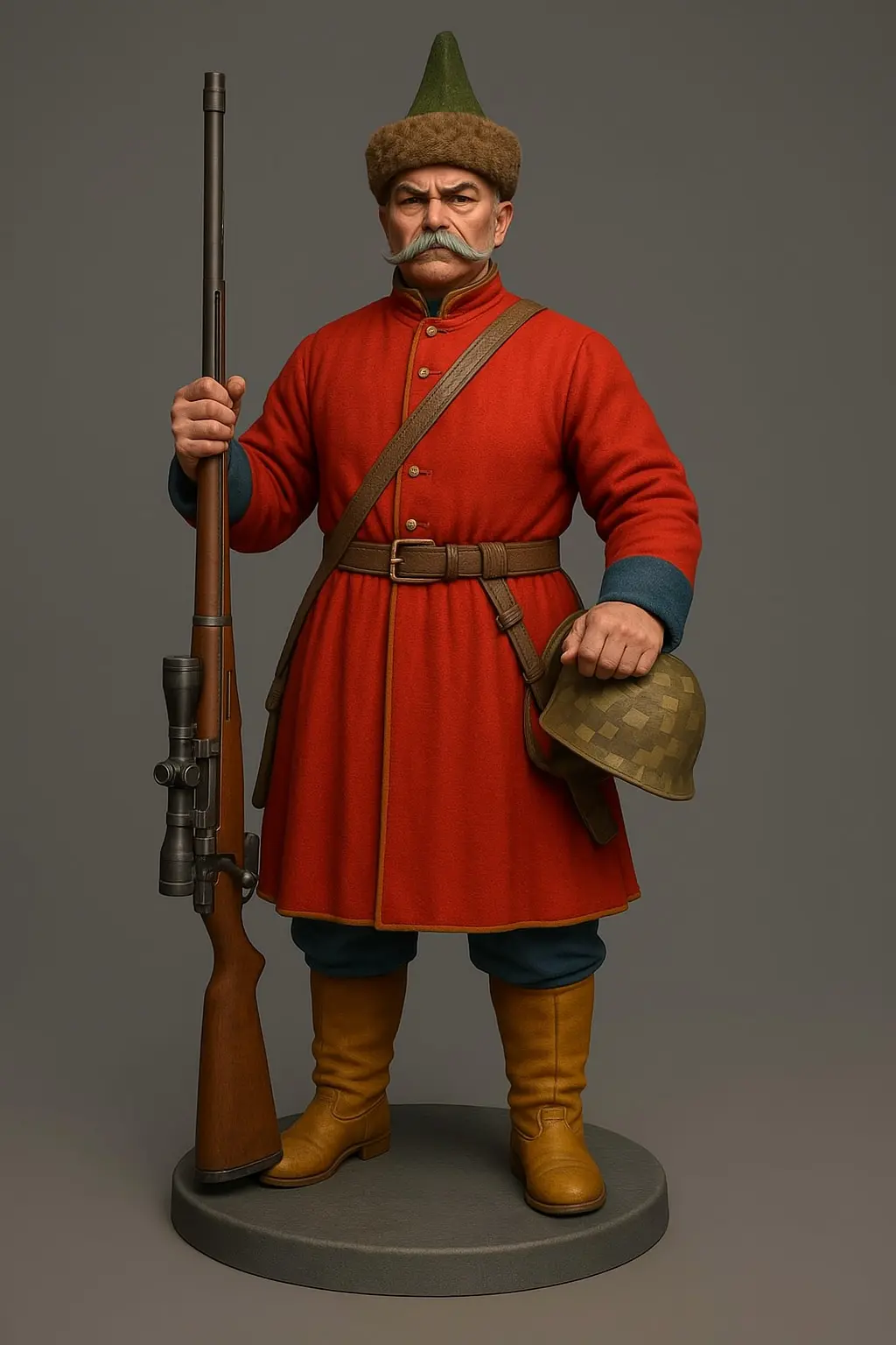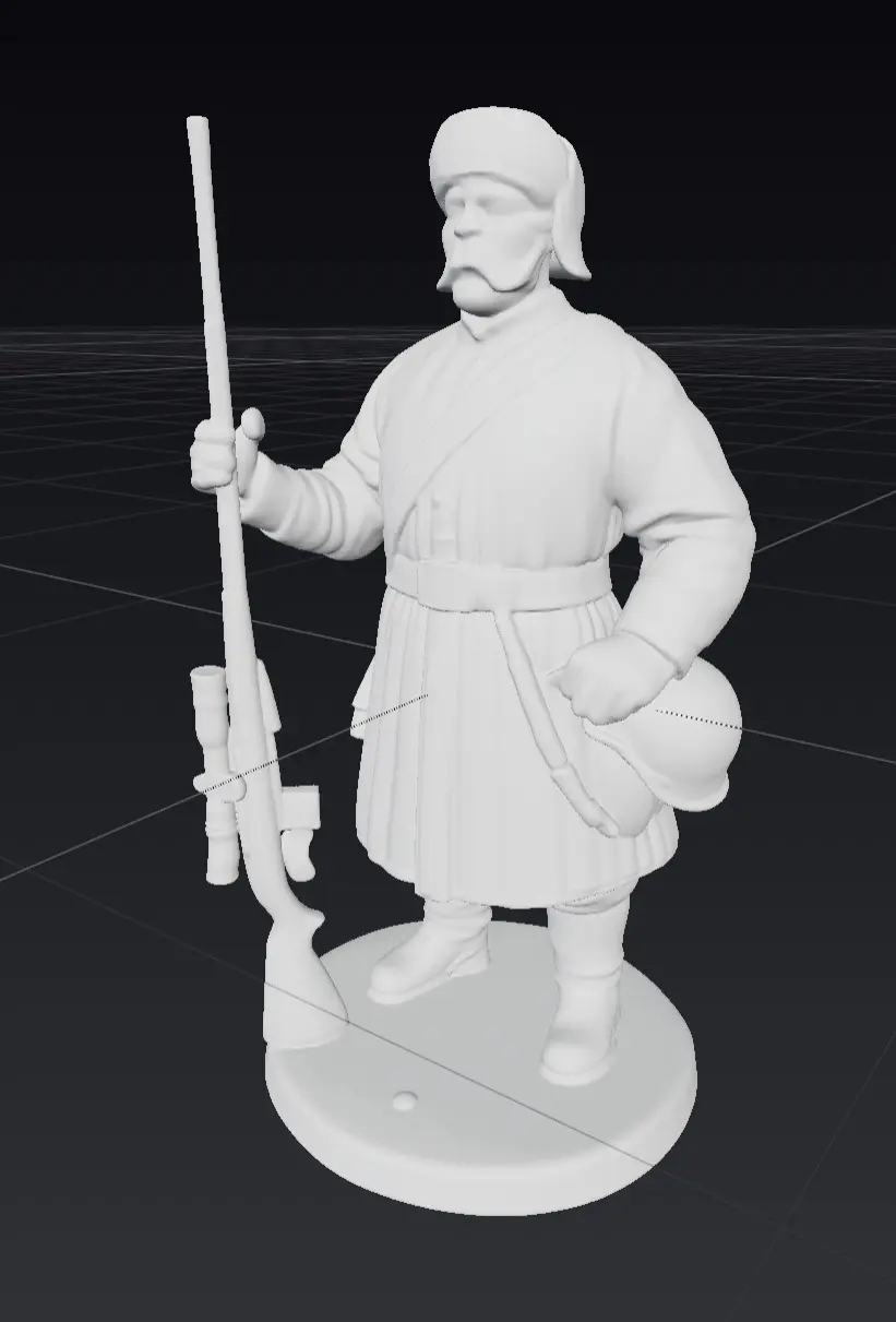 This is a Serdyk. The ukrainian soldier of the 17 century. Well more like Cossack state. So he teleported to the future, grabed the sniper rifle and helps.I would like to make this model much better but lack the skills. So if somebody interested I would be pleased to be in contact (write here funideas13@gmail.com)