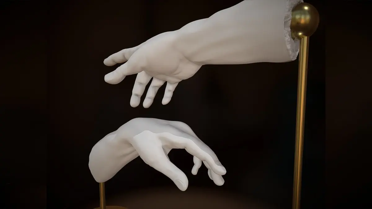 It's a decimated version of Adam's hands, taken from the famous masterpiece by Michelangelo The Creation of Adam, ready to be printed.
