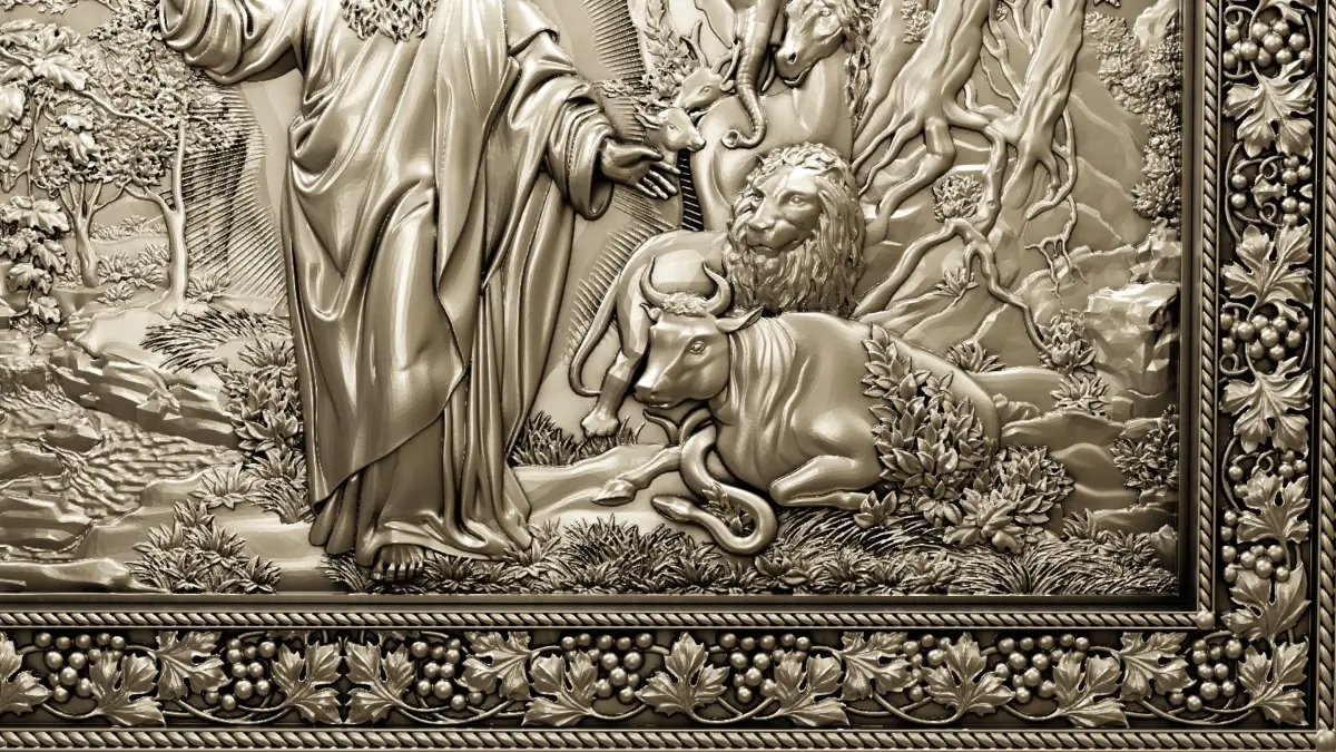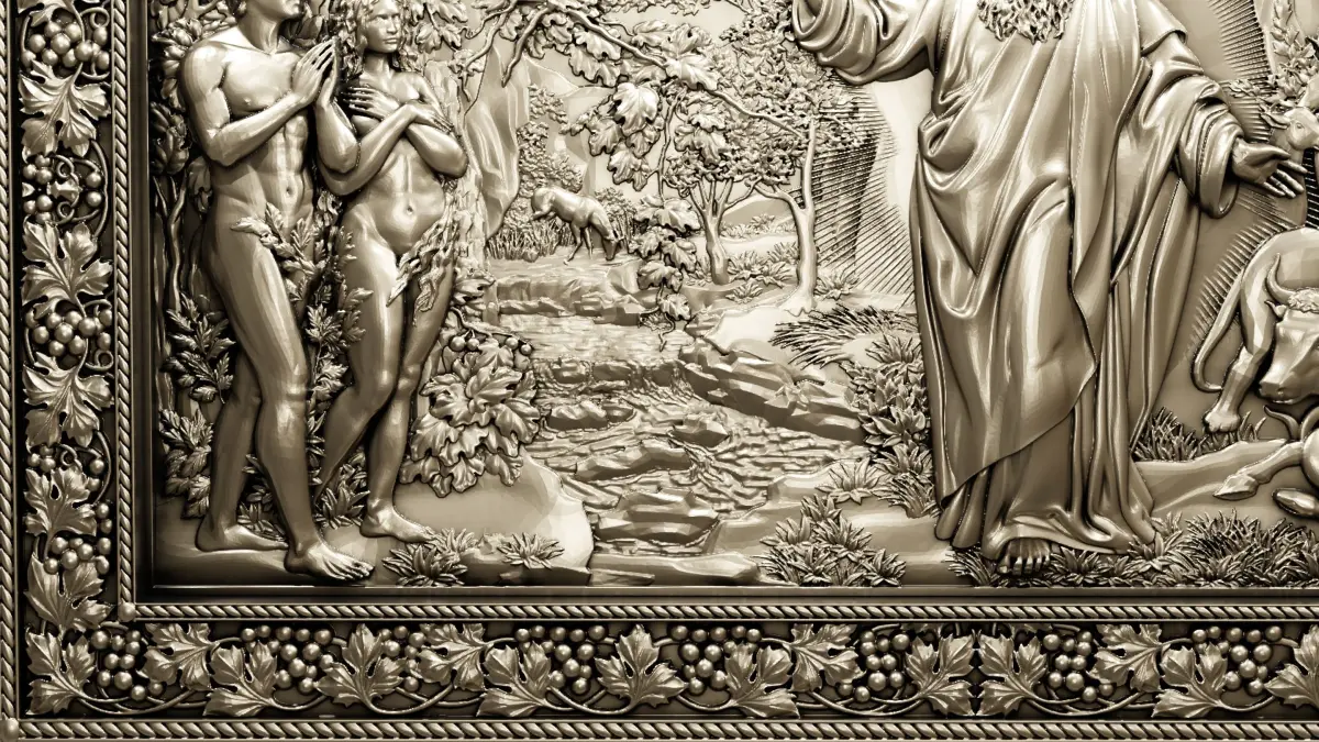 This model is based on the famous motif of the Creation of the World. The model is intended for 3D printing or milling. It's a large panel.