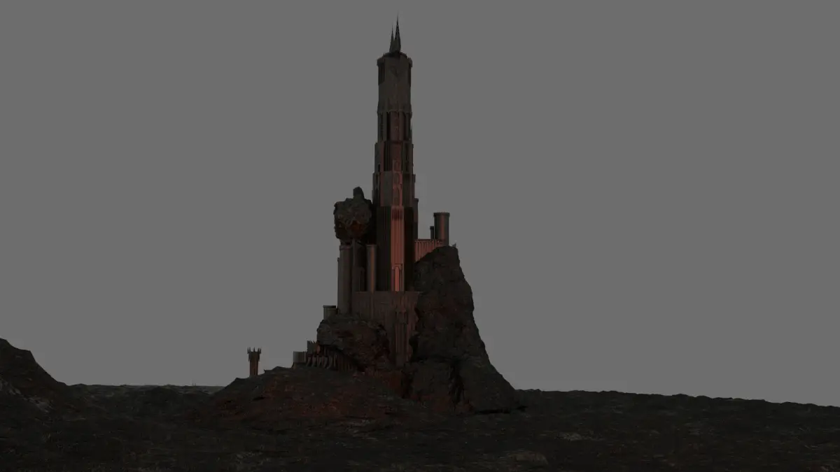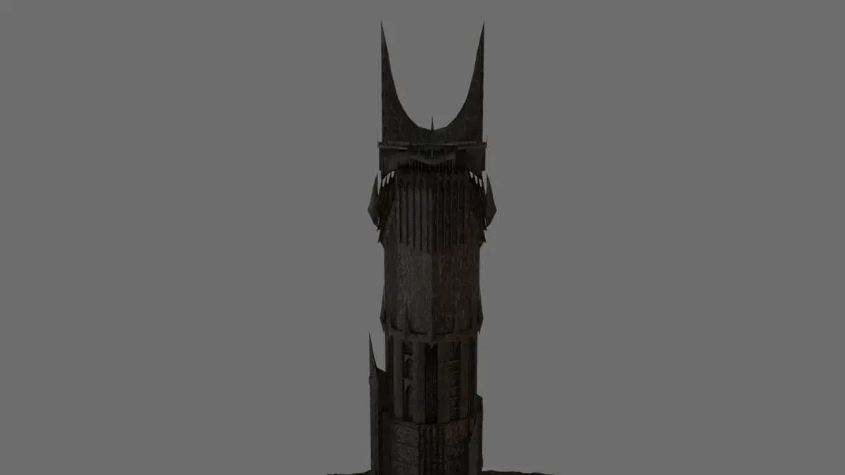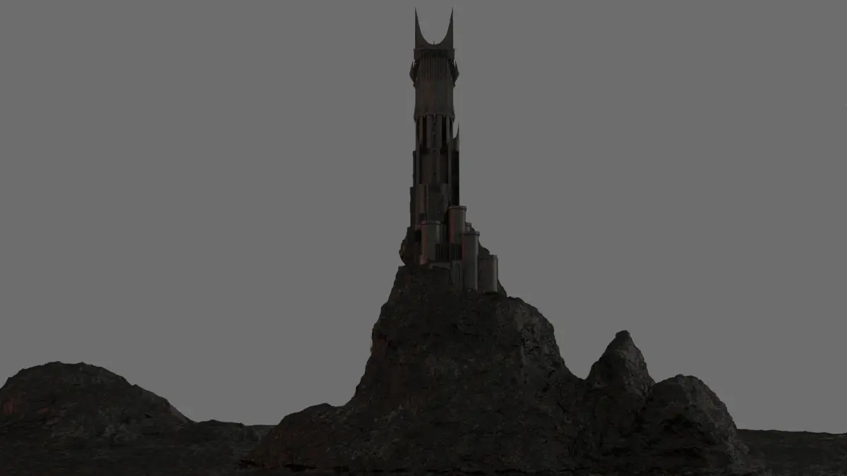 This is a high poly 3D model of the Dark Tower of Barad-Dur, lair of Sauron, from Lord of the Rings.