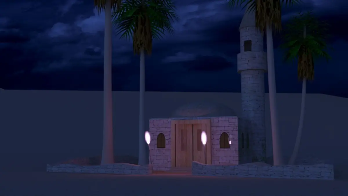 Old Arabic Mosque for game and design projects.Ingredients2 Torch with Fire EffectsVine from Mosque WallCrushed Garden WallsMosque's Main BuildingMinaret with balconyMosque WindowMosque Door