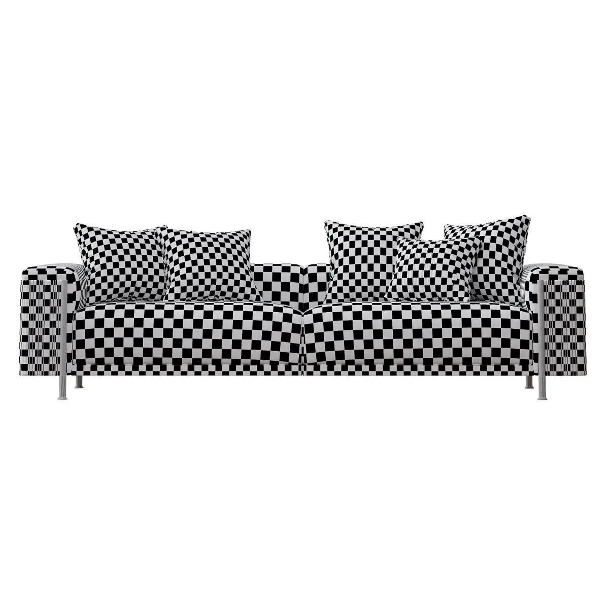 The Deven sofa is complemented by leather-lined armrests and quilted fabric, reminiscent of Trussardi's fashion world. Light, boxy lines contrast with soft cushioning and outline the profile of two versions sitting three or four. The Deven sofa, lighter thanks to the presence of legs (made of polished brass or metal arms), appeared in Milan in a leather and fabric version 3dsmax_2017, corona5, fbx, obj