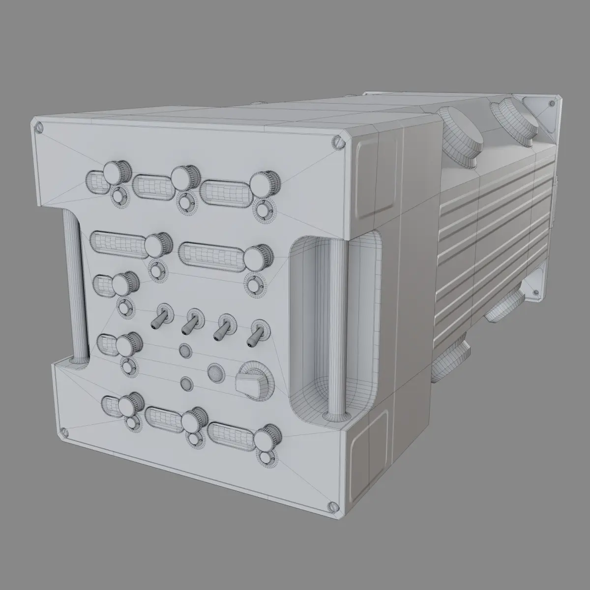 The dials could be separated to animate, or baked to an image to reduce the poly count.