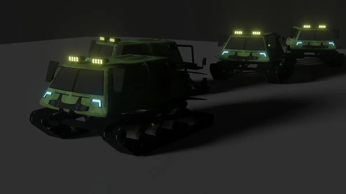 Offroad vehicle on tracks, my first upload and test how it works. This vehicle is fictional and i use it for an selfmade videogame (Thats why the tracks are just flat surfaces).