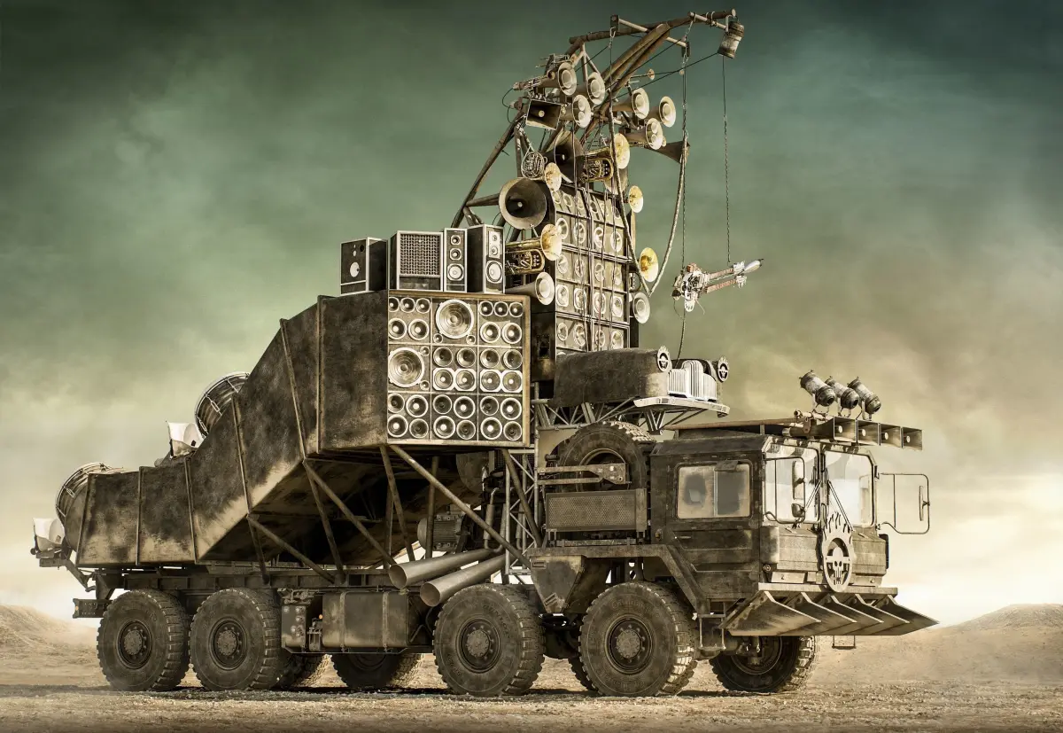 Fury Road Doof Wagon The Doof Wagon is the 'morale machine' of Immortan Joe's militia party, intended to rally the troops and keep them pumped up for battle. It is also a form of psychological warfare, allowing Joe's reputation to literally precede him into battle.
