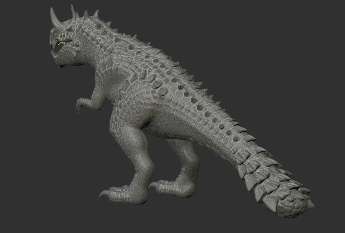 its jaws can cut the neck of its prey, accompanied by strong and sharp toenails that can pounce and plunge into the flesh of its prey,Its tail is very hard, has sharp scales on the sides to beat prey on the Grimmsaurs' sides, and the lower part of the tail can be smashed to break rocks to find prey.