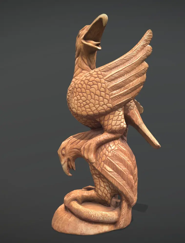 Source: Osawaru, Favour. , The Duel of Eagles, wood, Private collection, Benin city