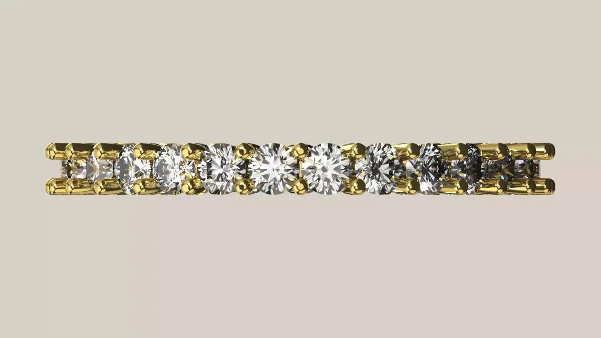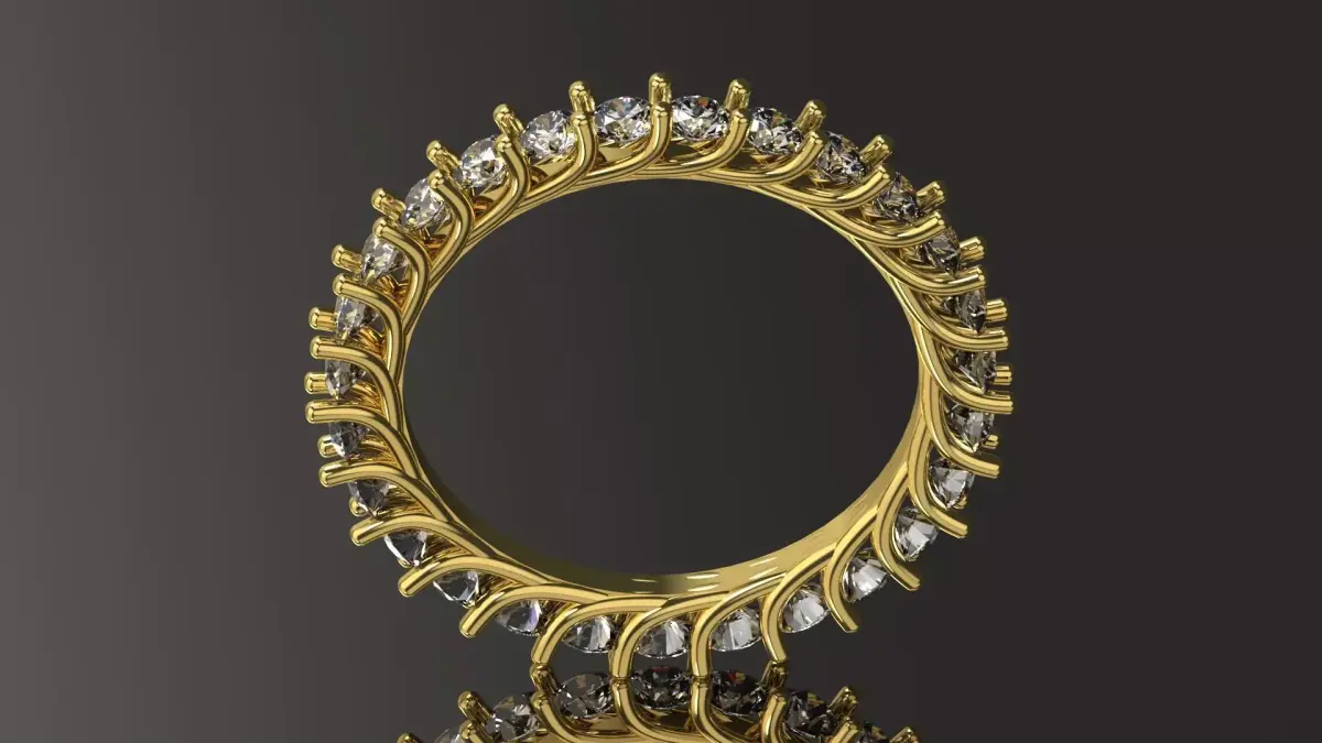 General Design Features| Feature | Details || :--- | :--- || Product Type | Full Eternity Ring || Design Theme | Classic, Elegant, Stackable or Wedding Ring || Suggested Metal | Yellow Gold (depending on the rendering), available in White Gold or Rose Gold || Main Stones | Round Brilliant Cut || File Ready | Yes (3D Print Ready) |