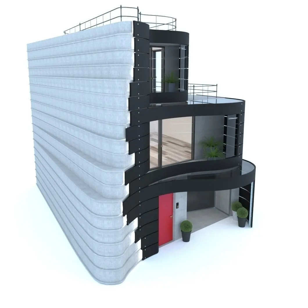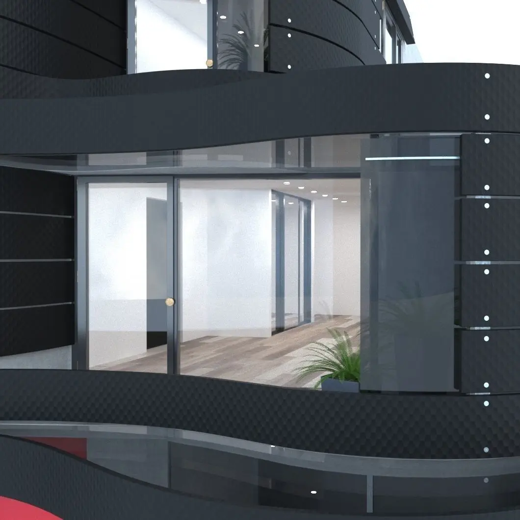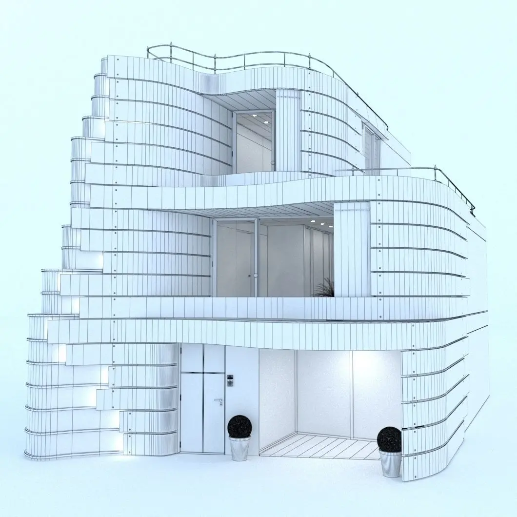Smooth curved lines combined with minimalism underscore the uniqueness of this building. The model easily fits into your exterior scene.