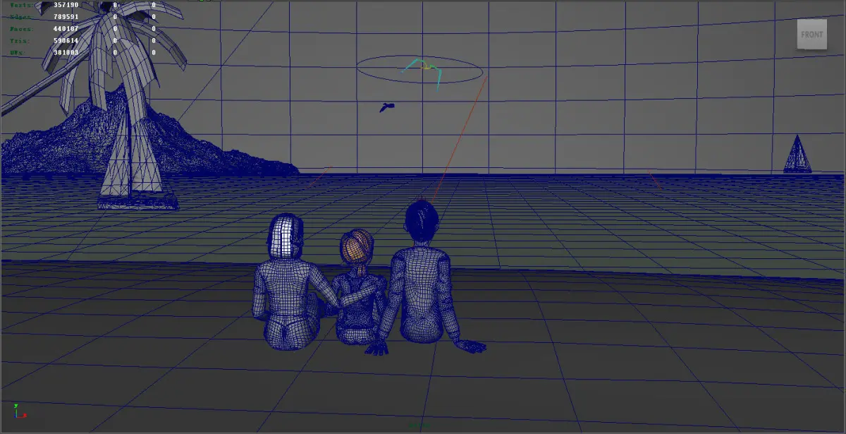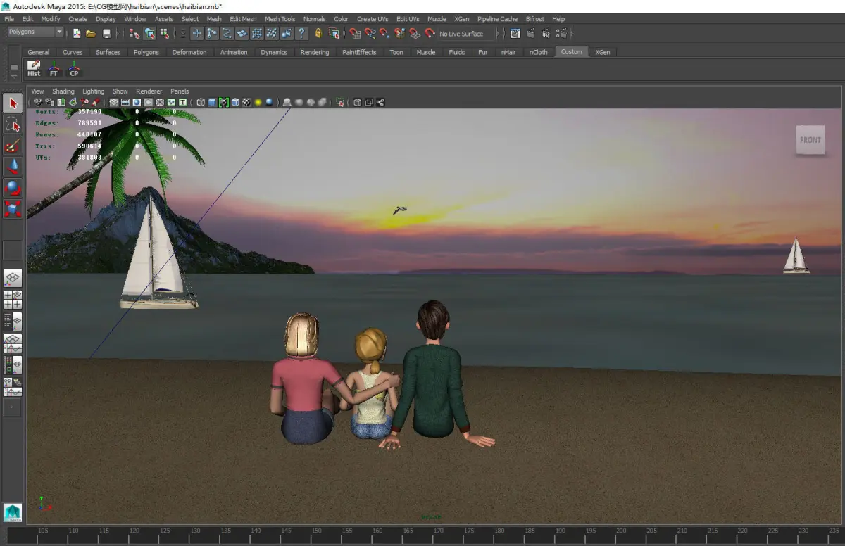 The family is watching the sunrise at the seaside 3D model