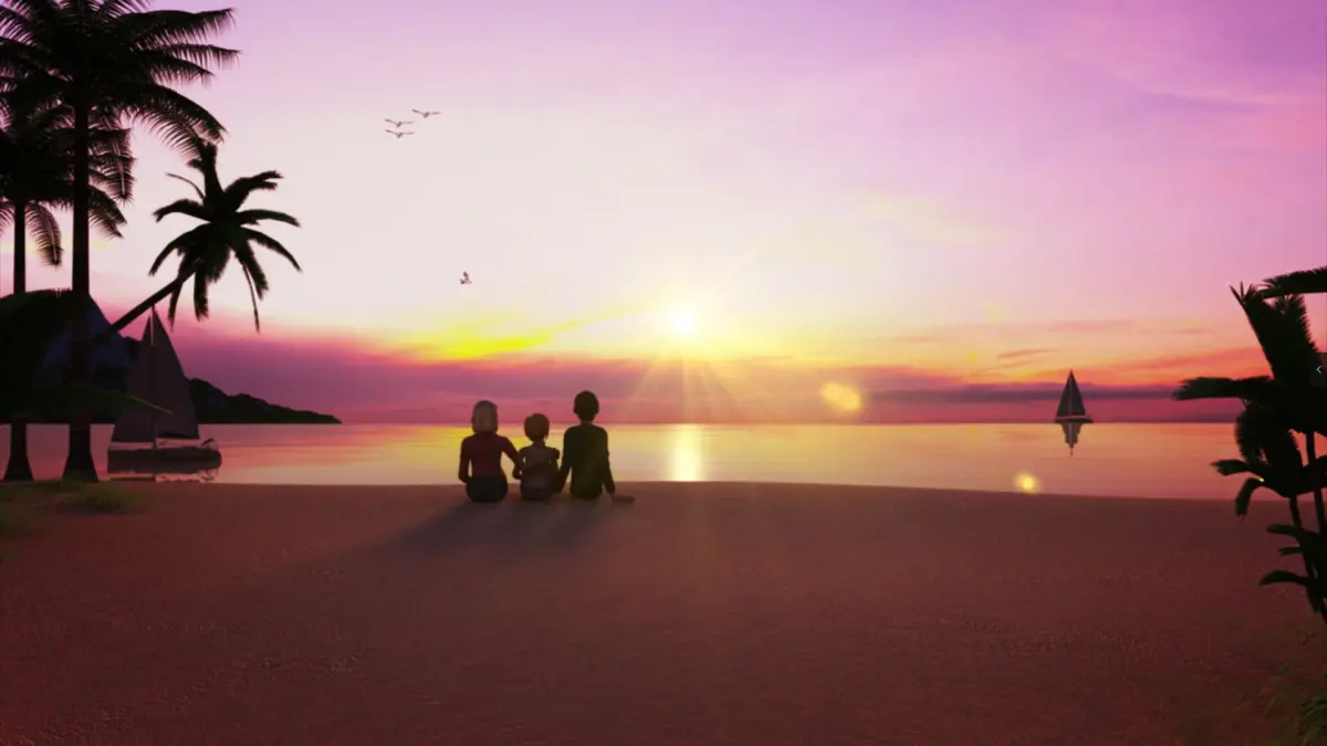 HomeCatalogThe family is watching the sunrise at the seaside 3D model