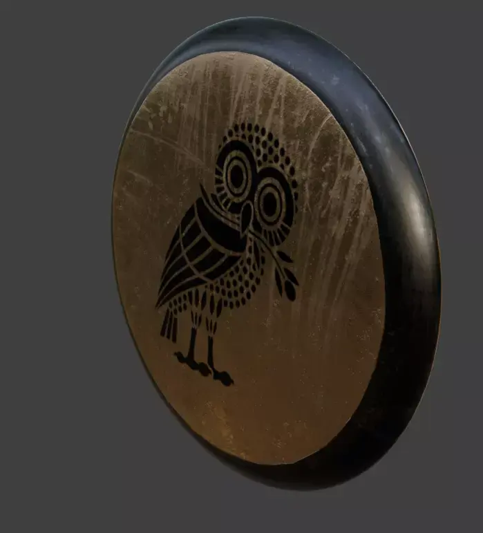 The famous shield of Greek warriors.The set includes two shield textures: the Owl of Athens and the Pegasus of Corinth.4K textures