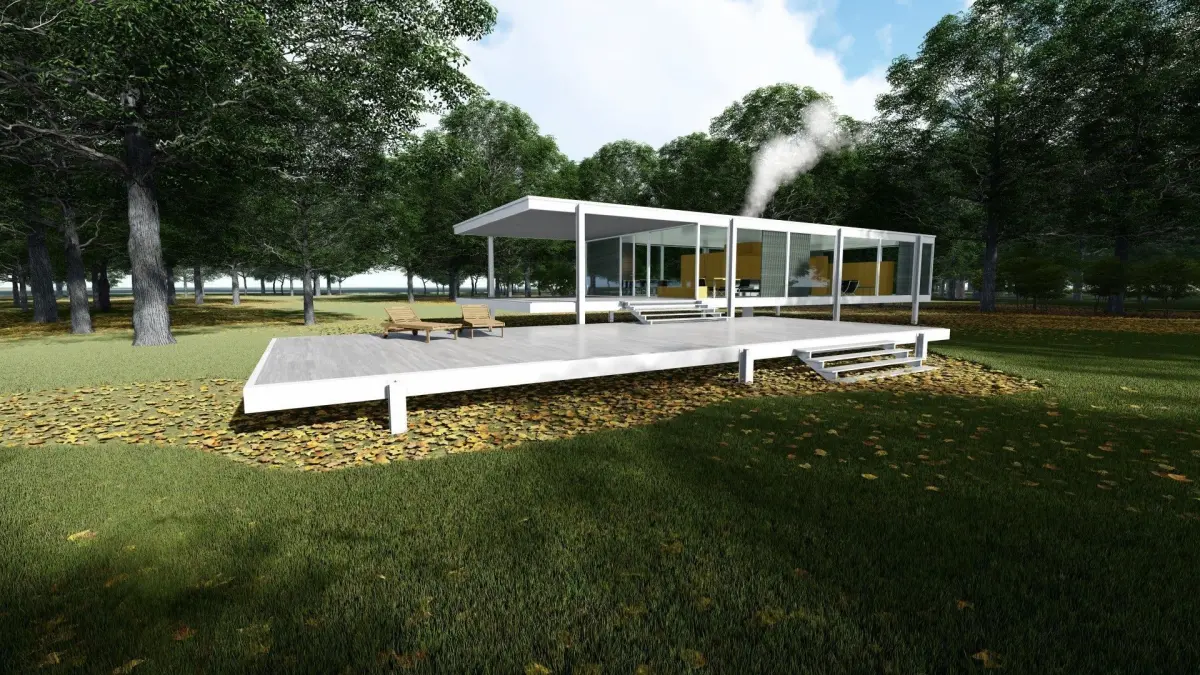 The Farnsworth House, a product of the Bauhaus, was designed by Ludwig Mies van der Rohe and constructed in 1951 close to the city of Plano, Illinois on a 60 acre estate owned by the Farnsworth family. The home is now protected and registered as national historic landmark. The model was created using the Collada file format. The above files were created using 3ds Max 2018 and the original Collada file.