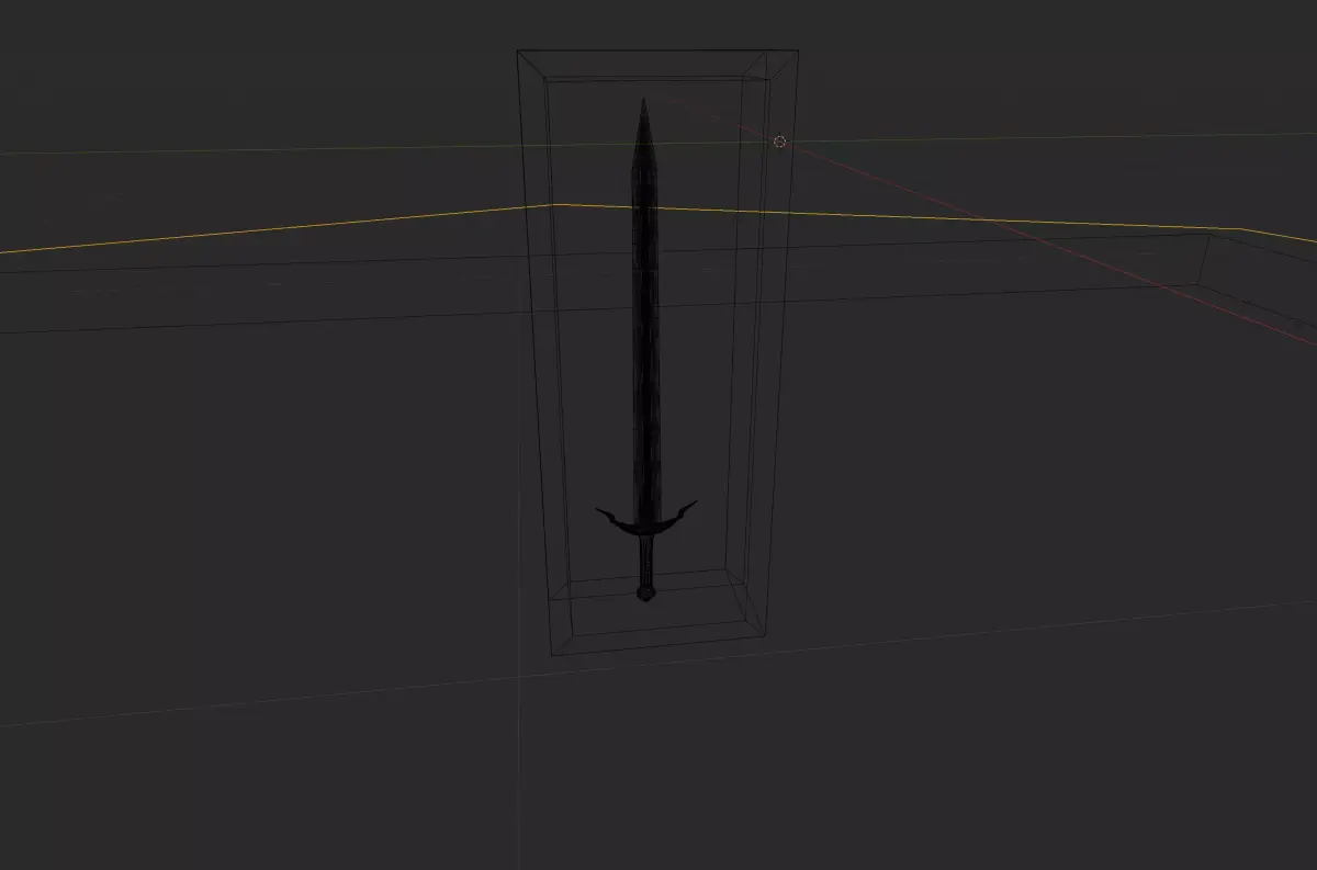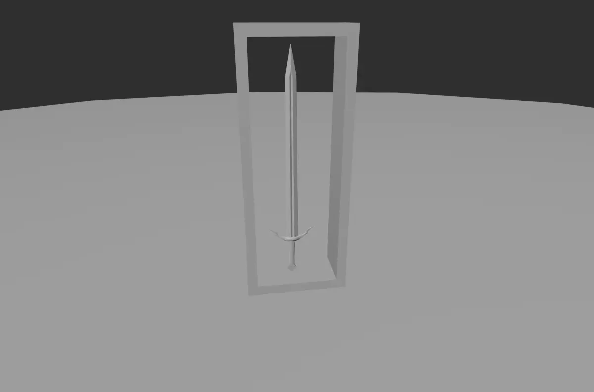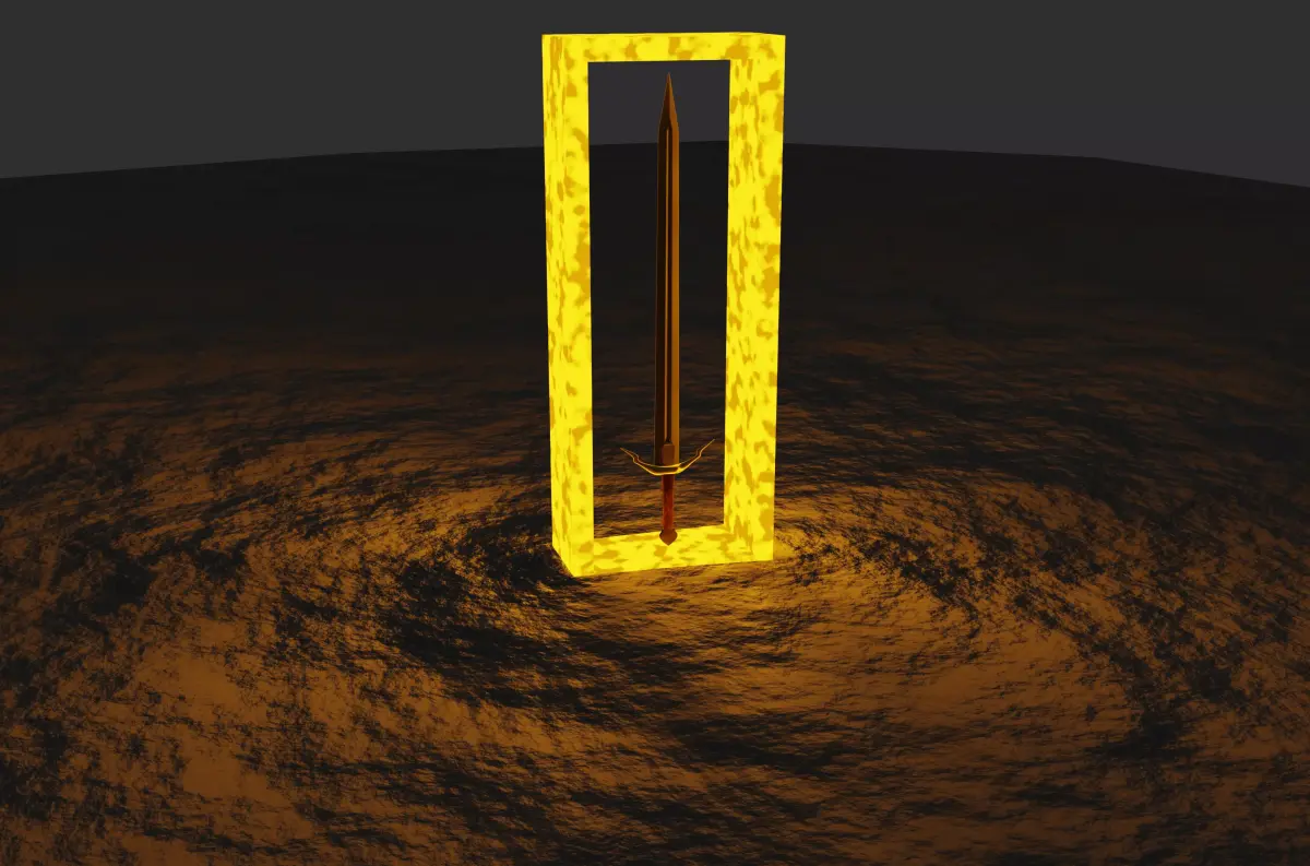 A mysterious sword trapped within a glowing frame, radiating an ominous energy as if it holds a forbidden power. Perfect for fantasy scenes, dark environments, or mystical game assets.