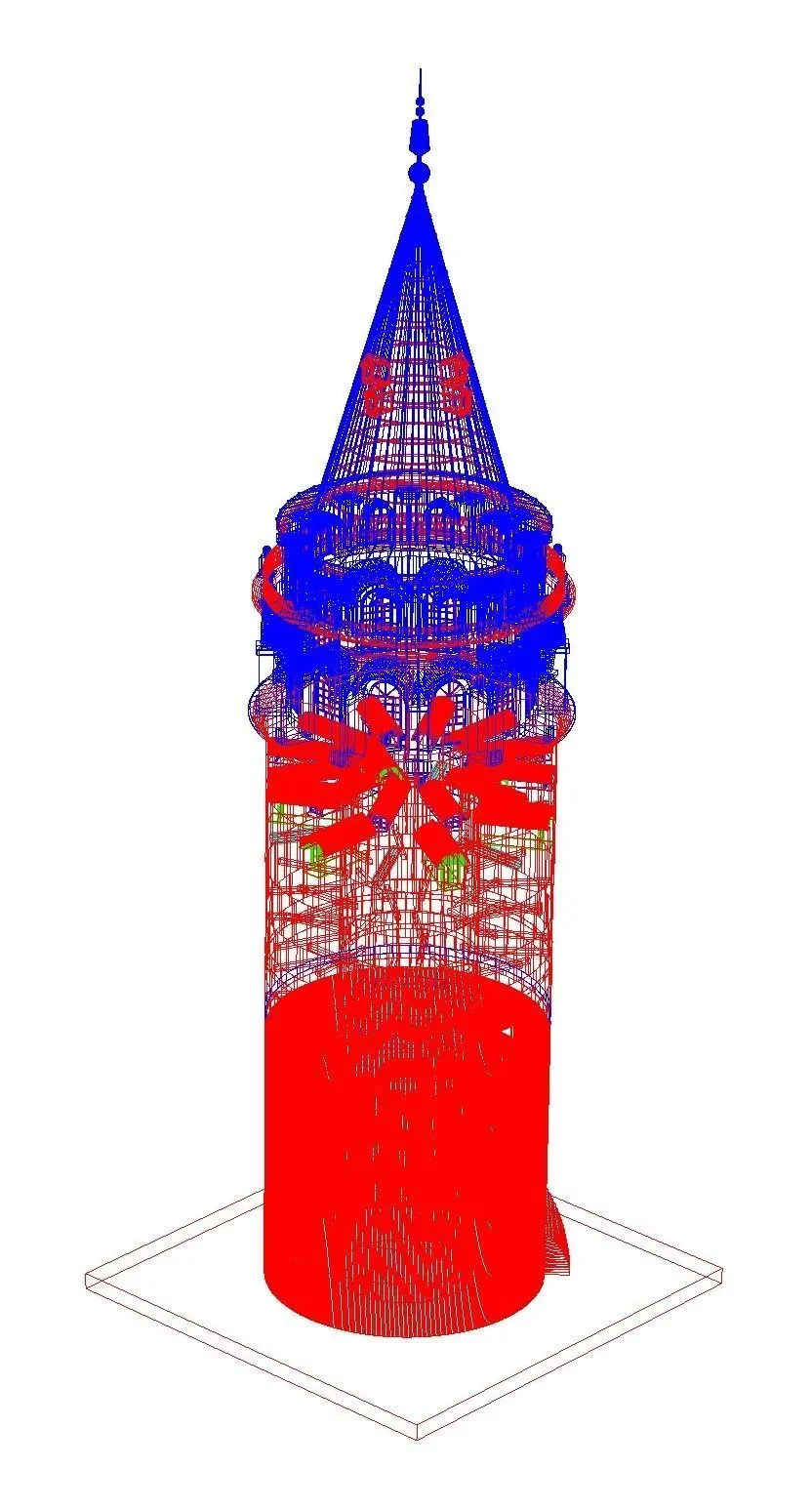 The Galata Tower (Galata Kulesi in Turkish) — called Christea Turris (the Tower of Christ in Latin) by the Genoese — is a medieval stone tower in the Galata/Karaköy quarter of Istanbul, Turkey, just to the north of the Golden Horn's junction with the Bosphorus. One of the city's most striking landmarks, it is a high, cone-capped cylinder that dominates the skyline and offers a panoramic vista of Istanbul's historic peninsula and its environs.The nine-story tower is 66.90 meters tall (62.59 m without the ornament on top, 51.65 m at the observation deck), and was the city's tallest structure when it was built. The elevation at ground level is 35 meters above sea-level. The tower has an external diameter of 16.45 meters at the base, an 8.95 meters diameter inside, and walls that are 3.75 meters thick.The Romanesque style tower was built as Christea Turris (Tower of Christ) in 1348 during an expansion of the Genoese colony in Constantinople.