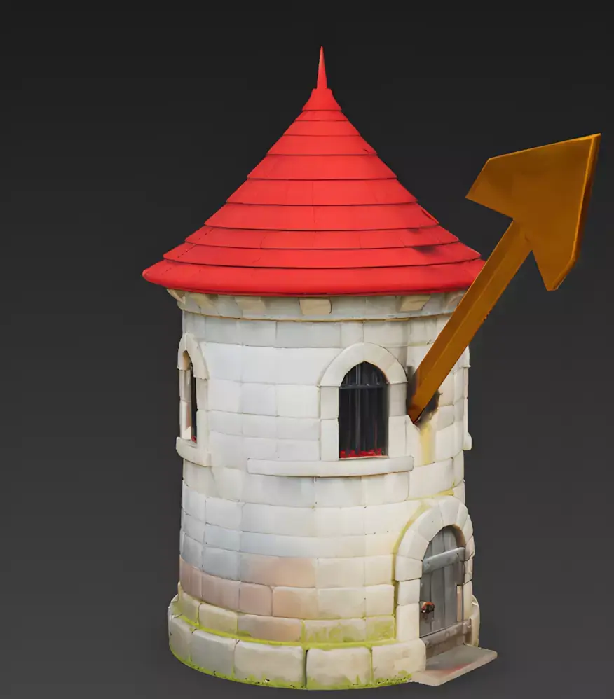 Files Included: FBX, GLB, OBJ, STL, ZIP (Textures).Quick Tip: The Golden Arrow is a separate mesh group. You can easily remove it to use the tower as a standard defensive building, or duplicate the arrow to create a scene where the tower is under a heavy magical bombardment.