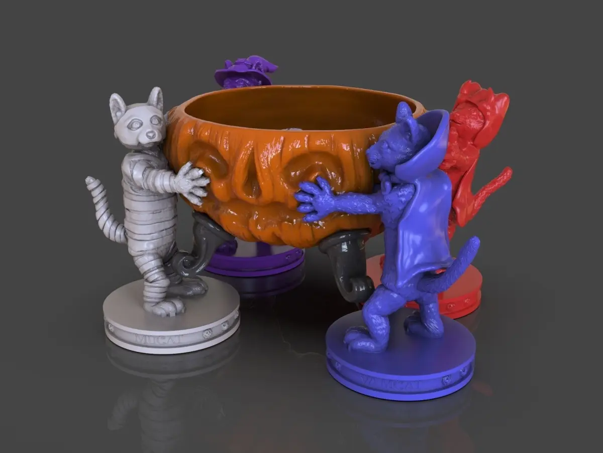 My entry for the Flashforge Halloween 3D Print Carnival 2021 made it with ZBrush inspired by cats disguise as popular classic horror monsters ideal to put candies for the Halloween night or a party, I separate each part for easy 3d print also I included the OBJ, STL, and the ZBrush tool files also included the Pictures I took for the final 3d print with candies If you need 3D game assets or STL files I can do commission works.