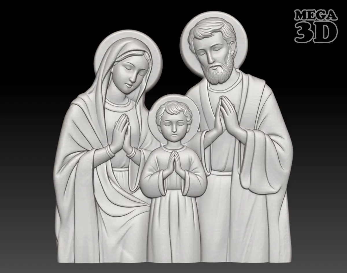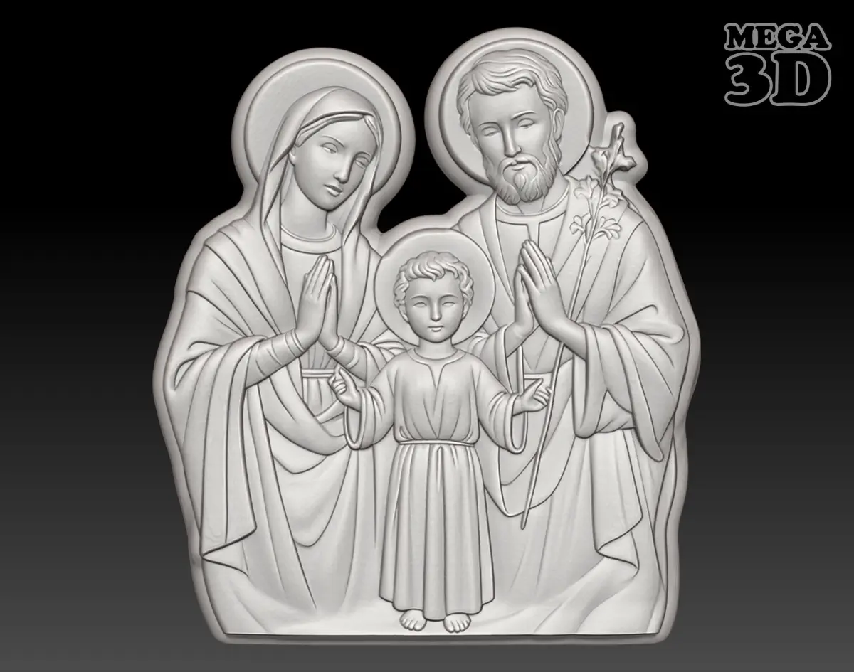 Holy-Family, saint, religious, christian, pendant, medal, necklace, cnc, printing, relief, decor, jewelry, artcam, art, engraving, carved, basrelief, woodworking, holy