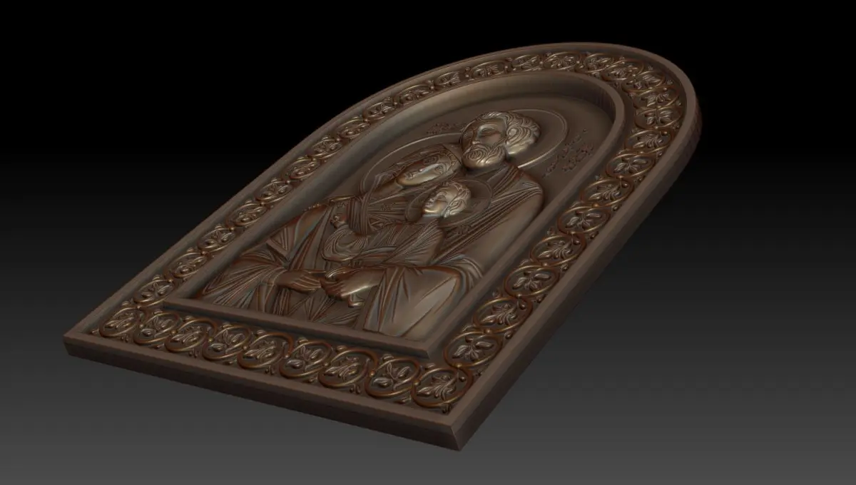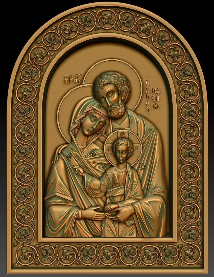 3d model The Holy Family, Orthodox Christian Icon . The icon reproducing the Holy Family, Mary, Saint Joseph and Jesus together. For milling on CNC machines. Can be used in the production of souvenirs, furniture, jewelry. Files in stl format, for import to artcam, rhinoceros, 3ds max, etc. You can scale the model to any size you need.