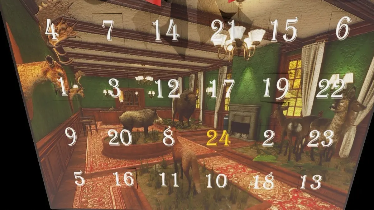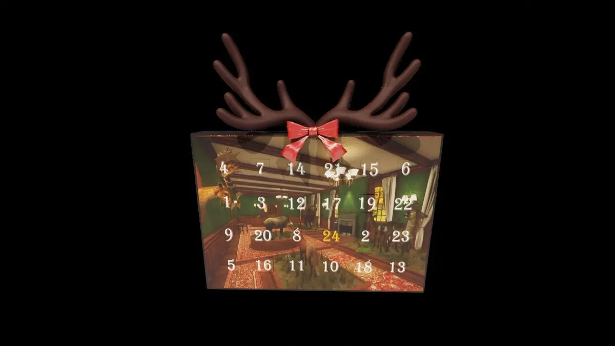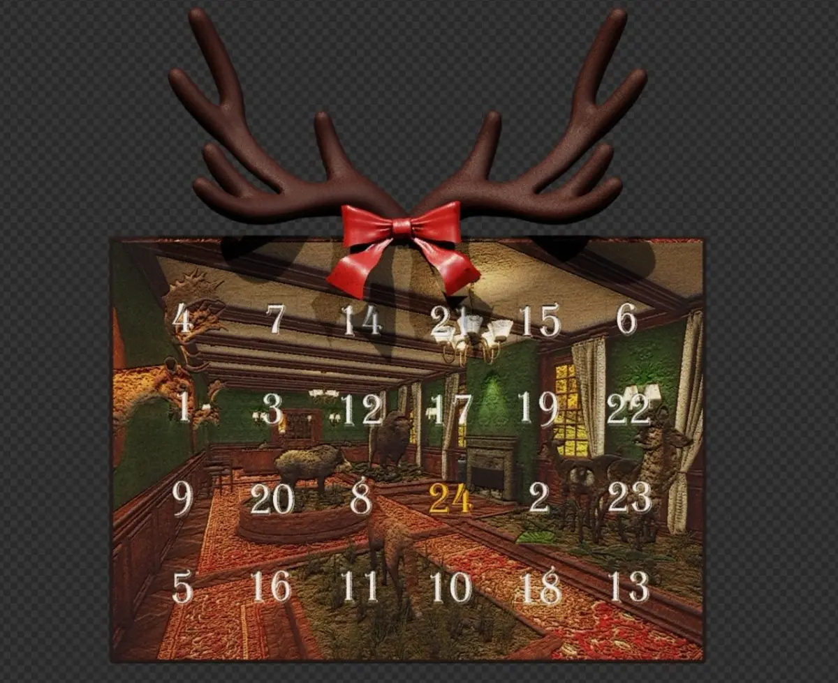 Hunter-themed Christmas Advent Calendar. Designed to be used in Blender.