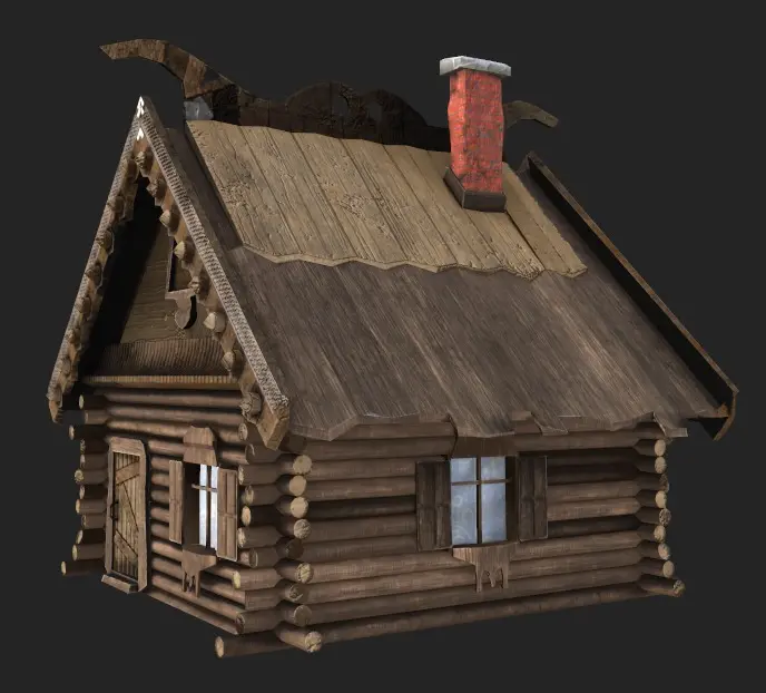 The hut of hunter or an ordinary house in an old village Low-poly 3D model