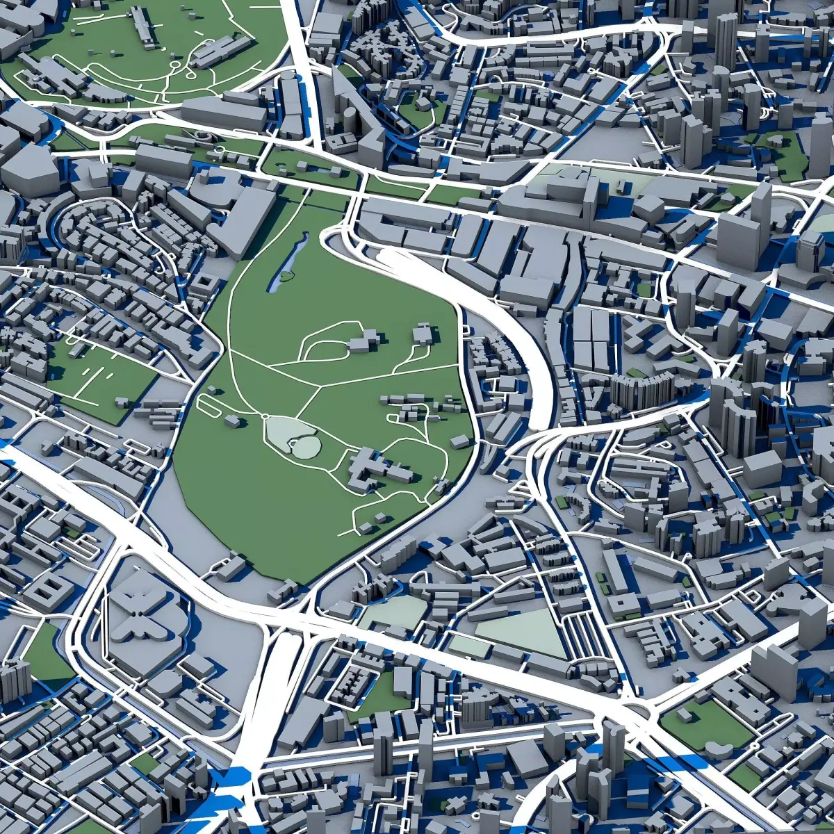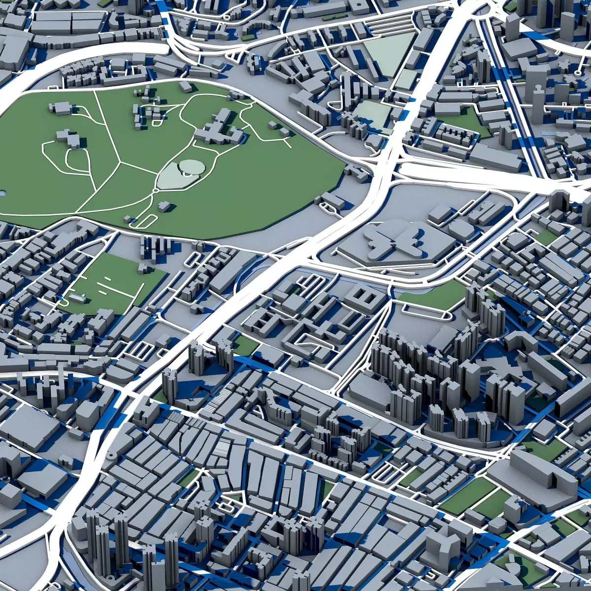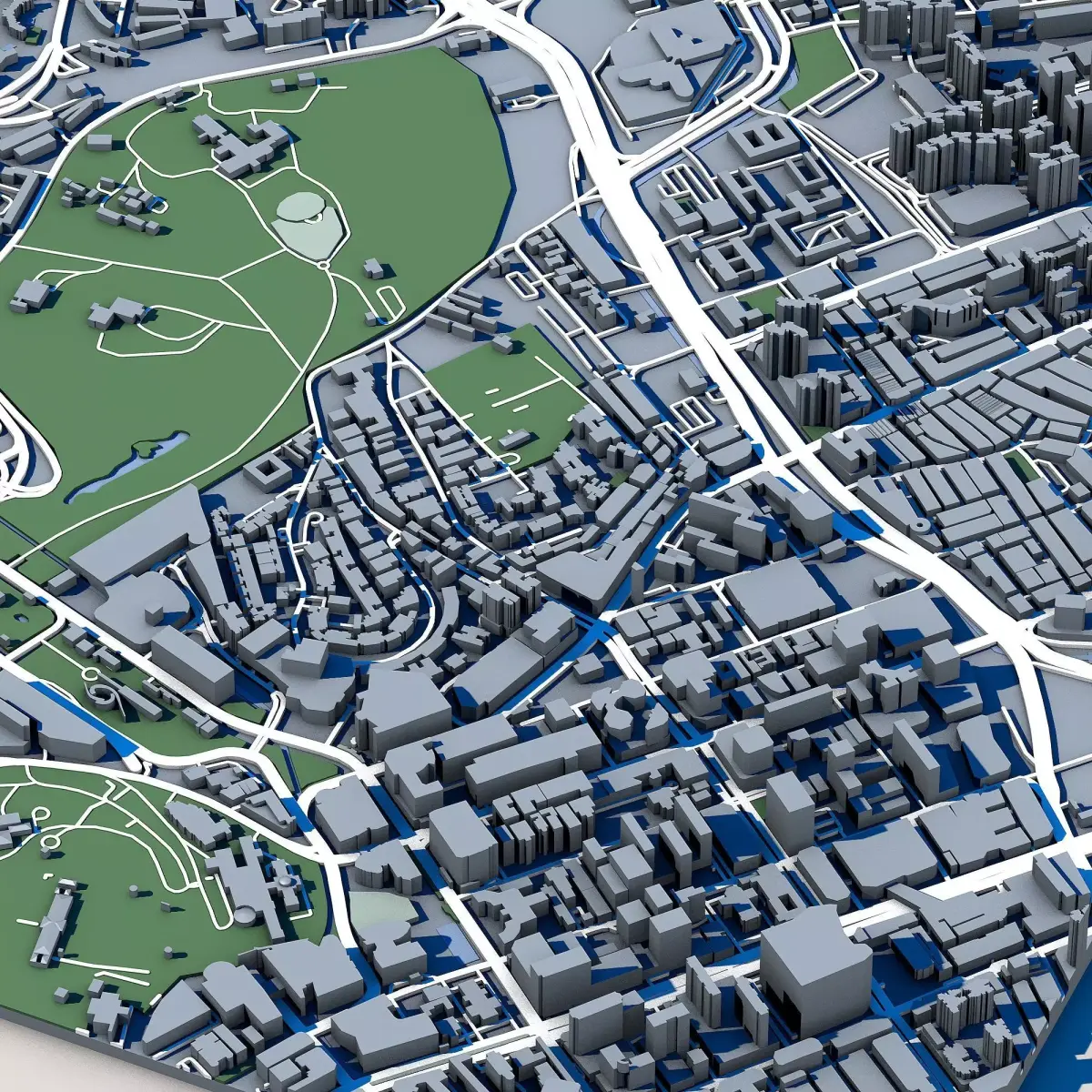 The .ZIP folder contains separate .STL files – buildings, water, vegetation, base etc.