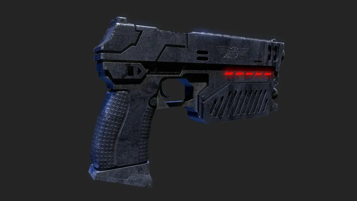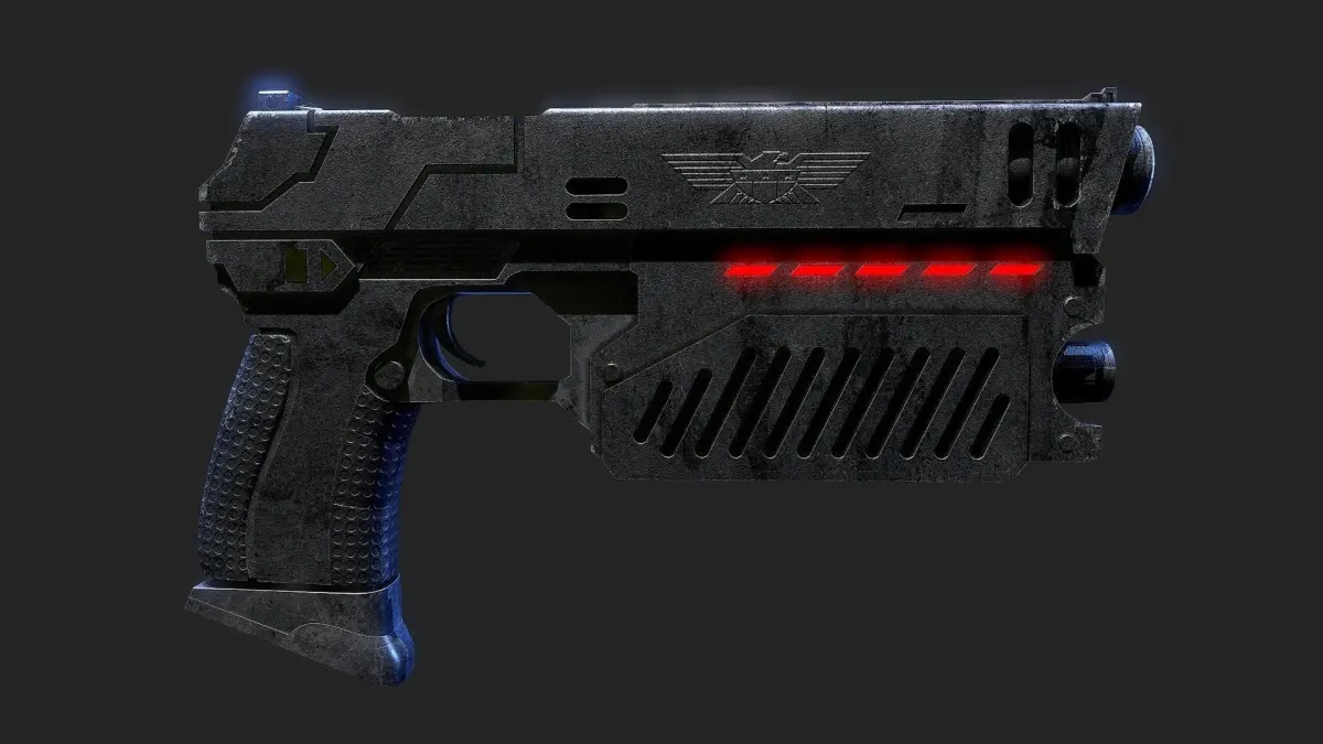 The Lawgiver is a fictional weapon used by the Judges including Judge Dredd. The Lawgiver is a self-loading handgun featuring manual and automatic focusing and targeting, plus a built in computer capable of controlling its operation. It fires a range of speciality ammunition. An in-line gunsight shows the view directly down the barrel. A Lawgiver can only be operated by its designated Judge owner, whose palm print is programmed into the gun's memory.