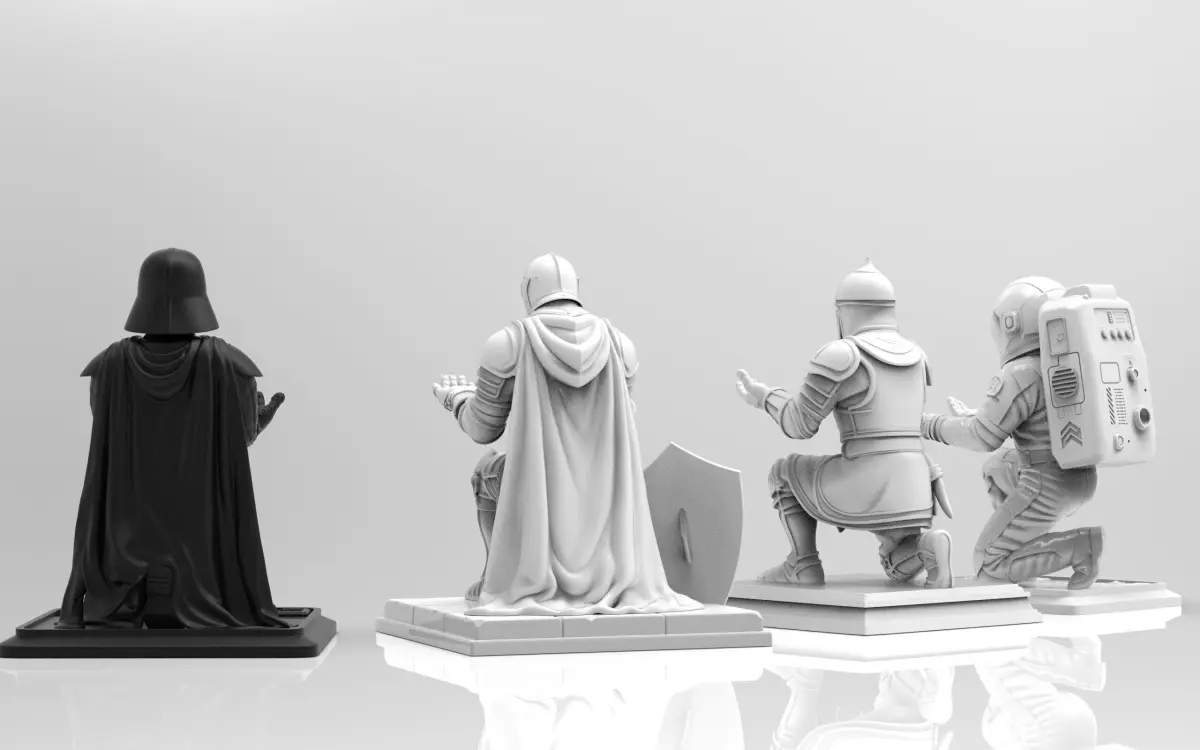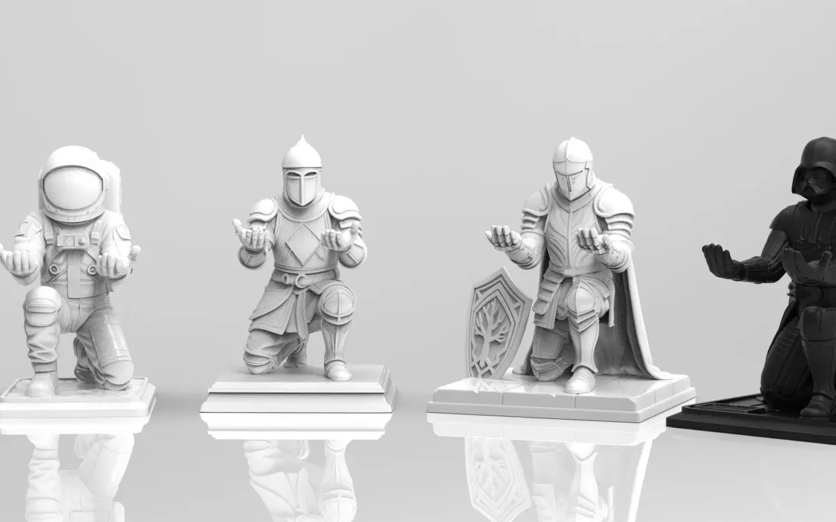 Add a heroic twist to your desk setup with this epic collection of character-based pen holders. Each figure kneels in a solemn pose with open hands, offering a unique and imaginative way to store your pens, brushes, or small tools. Designed with high attention to detail and personality, this set blends fantasy, sci-fi, and pop culture into functional art.