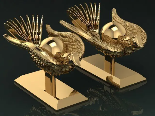 A model of a bird flying and carrying the whole world on its back .This model has exquisite detail and is stunning to the finest standards .