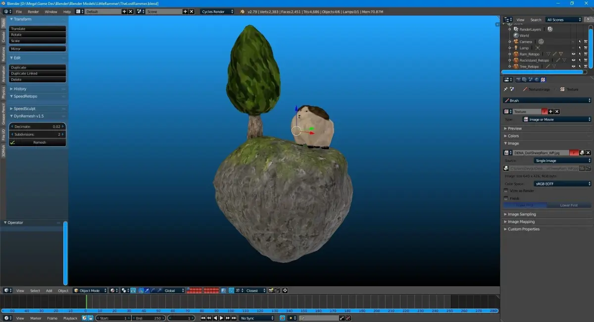 - Low Poly Ram, Rock Island, and Tree (Retopologized down to 4k+ Tris for all 3 Models)