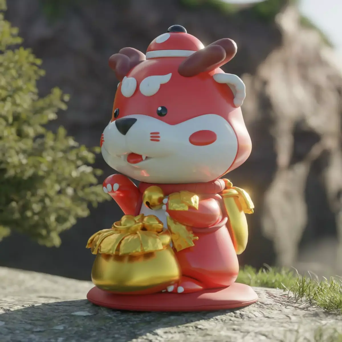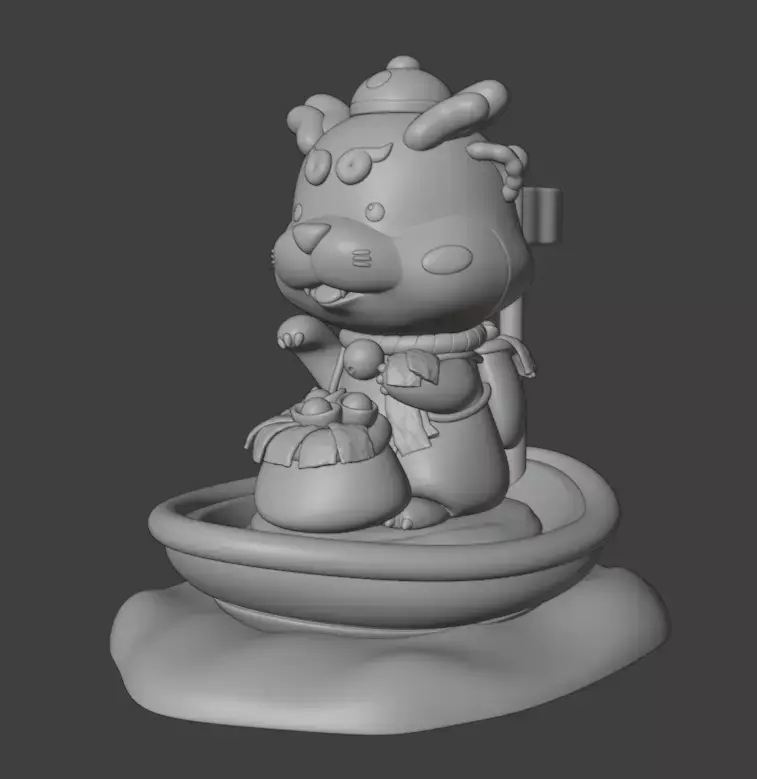 This model comes from a design competition in which I did not advance to the final round.I created this piece inspired by sea otters, which help preserve and protect the marine ecosystem and seaweed. I really liked this concept, so I combined it with Chinese beliefs about good fortune — incorporating auspicious colors and symbolic elements — to create an art toy that can be collected as a charm for luck and positivity in life.