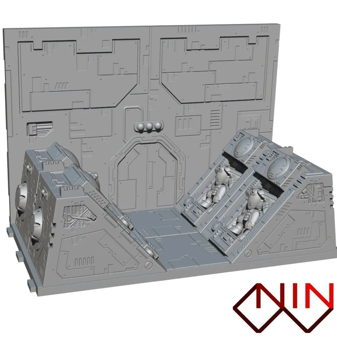 Basement and wall is designed to meet the Greater Good ahestetic and the pods are designed to store a whole small stealth suit or can be placed empty ready to be filled with a suit re-entering from a mission.