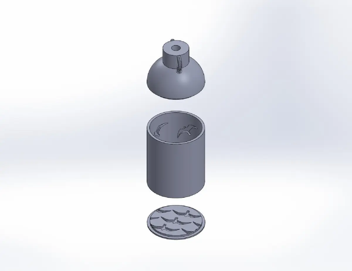 This lamp design in the form of a jug stands at 6 inches tall with a width of 3.75 inches. It is ideal for hanging or for table top placement. It may be lit utilizing a standard A19 size,40 or 60 watt equivalent LED bulb. Other assembly components not included are an 8 inch white cord set with switch and a 250-watt ceramic hard-wired ceiling socket (see pics or [Assembly Instructions](http://www.outerbankslights.com/wp-content/uploads/2014/12/The_Mariana_Jug_Assembly.pdf)). Recommended filament colors include red, yellow, green, blue, pink, etc. (all lighter colors except white and natural). The streamed files follow this order: Bottom, Middle and Top.