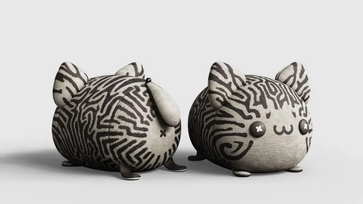 Little fluffy pillow cats. Ideal to set play spaces or children´s rooms. Dimensions (26 x 19 x 18 cm)