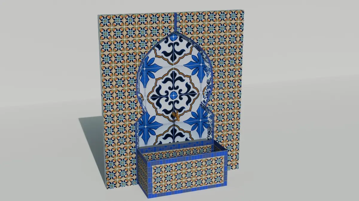 The traditional moroccan fountain it is a 3d model with great topologie , i create it with blender software rendering resolution 1920*1080.