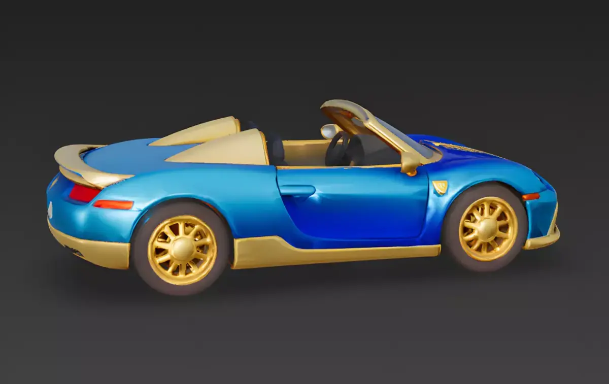 Files Included: FBX, GLB, OBJ, STL, ZIP (Textures).Quick Tip: The Golden Rims and Hood Stripes are separate material IDs. You can easily apply an Anisotropic shader to the gold parts to create a realistic metallic gleam that changes as the car drifts around corners or speeds through desert canyons.