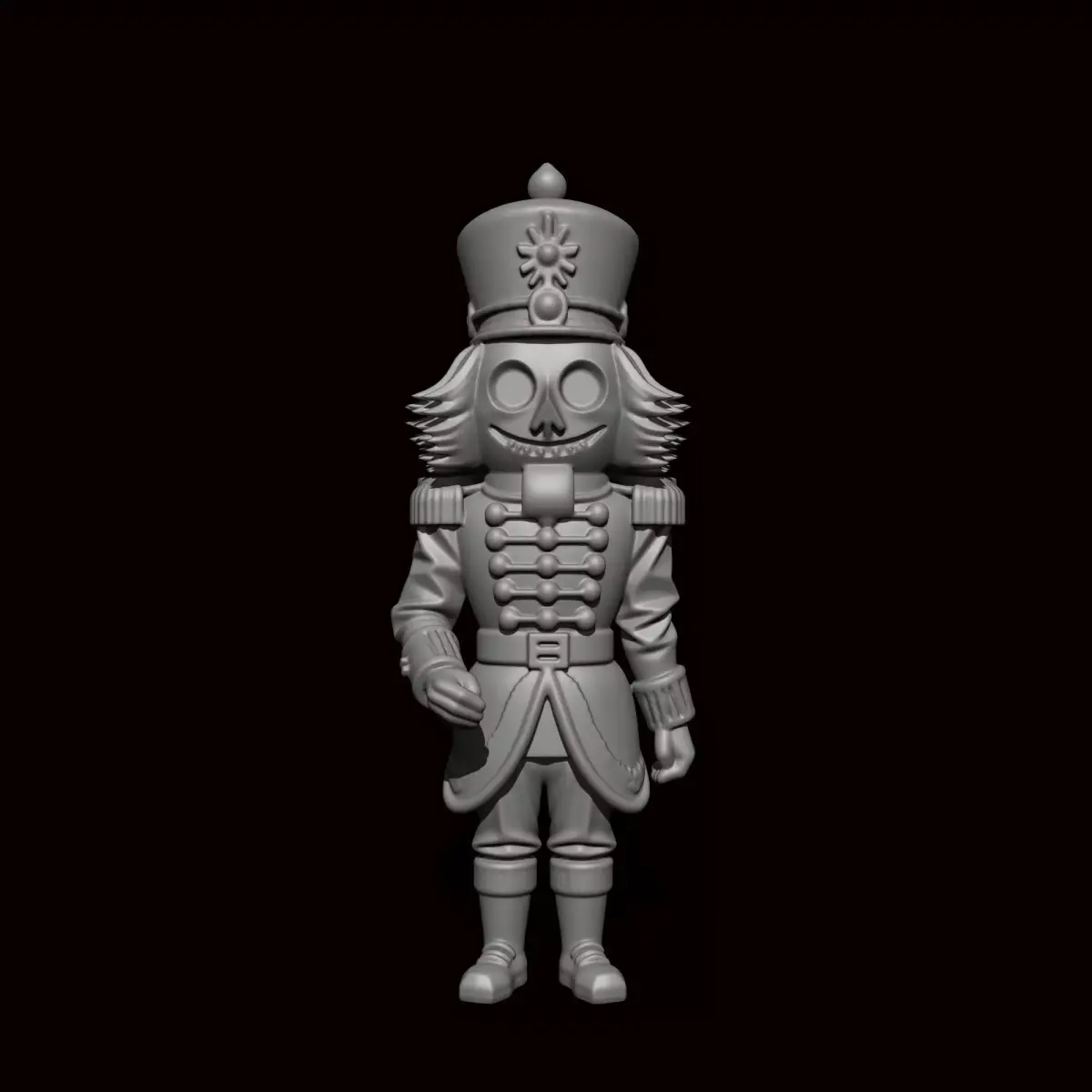 Design ConceptThe Nutcracker attire and styling reimagined with a spooky Halloween theme, combining Halloween symbols like pumpkins and a skeleton face with the traditional Nutcracker figure.