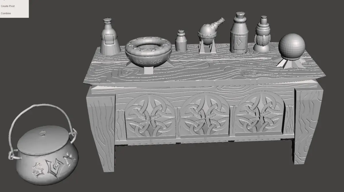 3 parts to print:First floor with insideSecond floor with small roomRoofBonus: the alchemist table with accessories